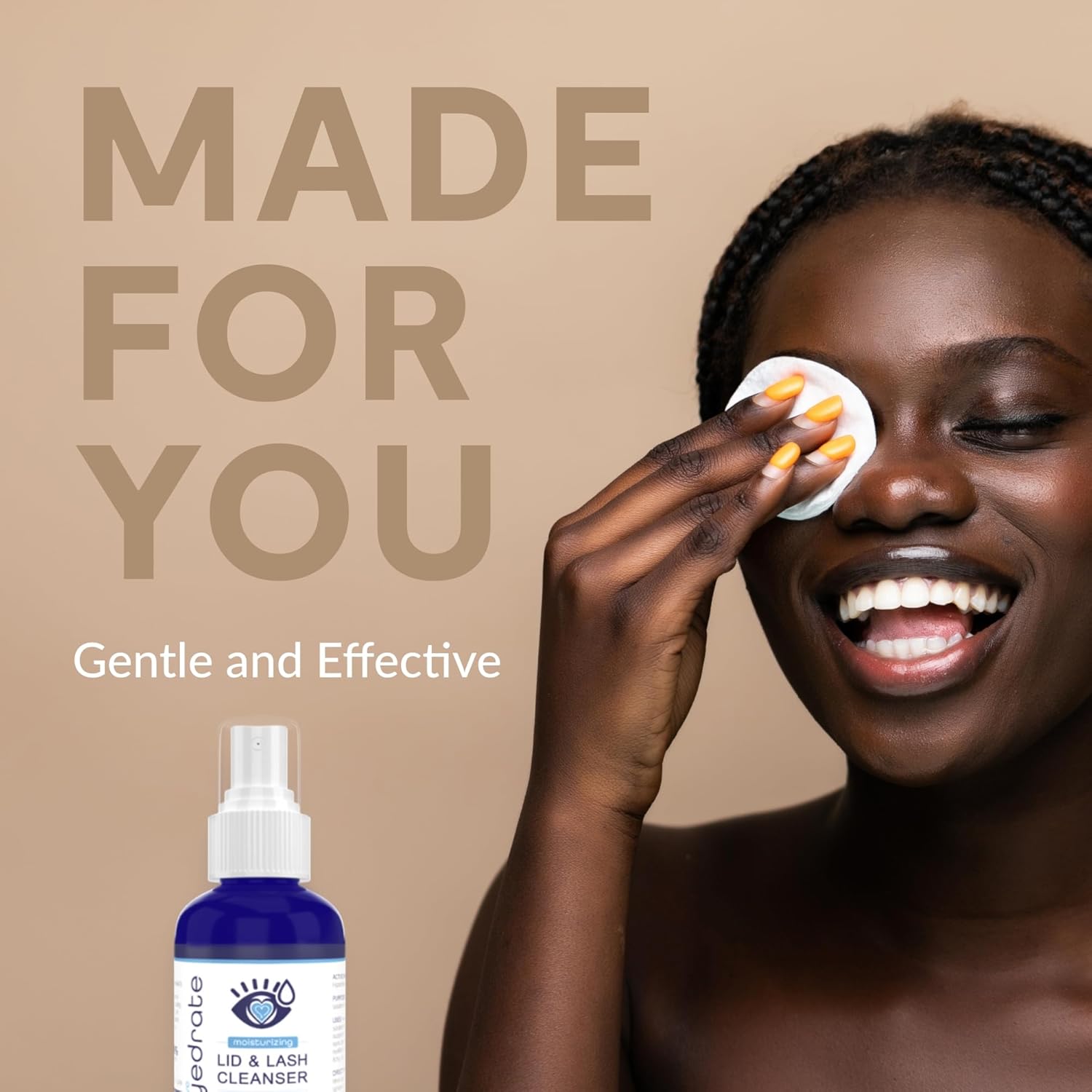 - Soothing daily cleanse: Heyedrate hypochlorous acid spray for face and eyelid cleansing is designed to cleanse deep into the eyelid and lash area to help remove any daily buildup, debris or makeup
