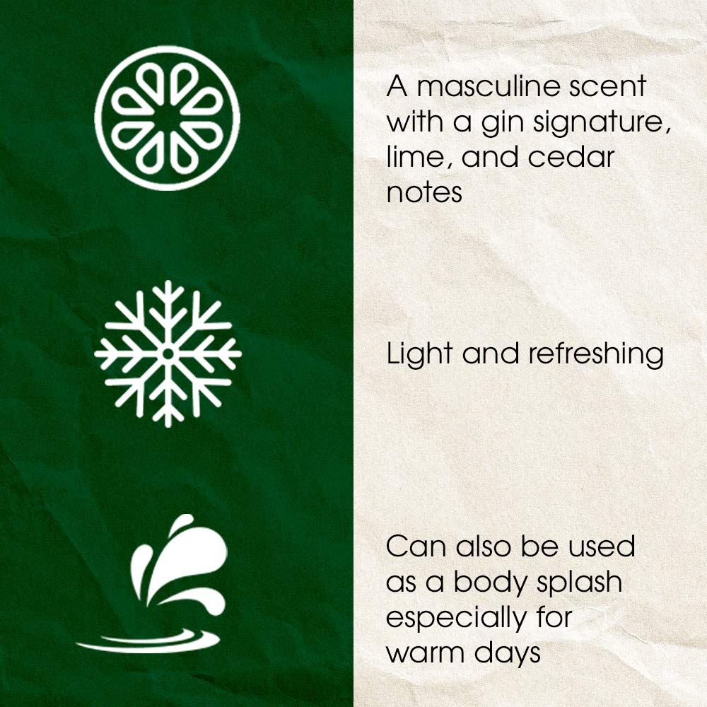 - Scent : Gin, lime, and cedar notes