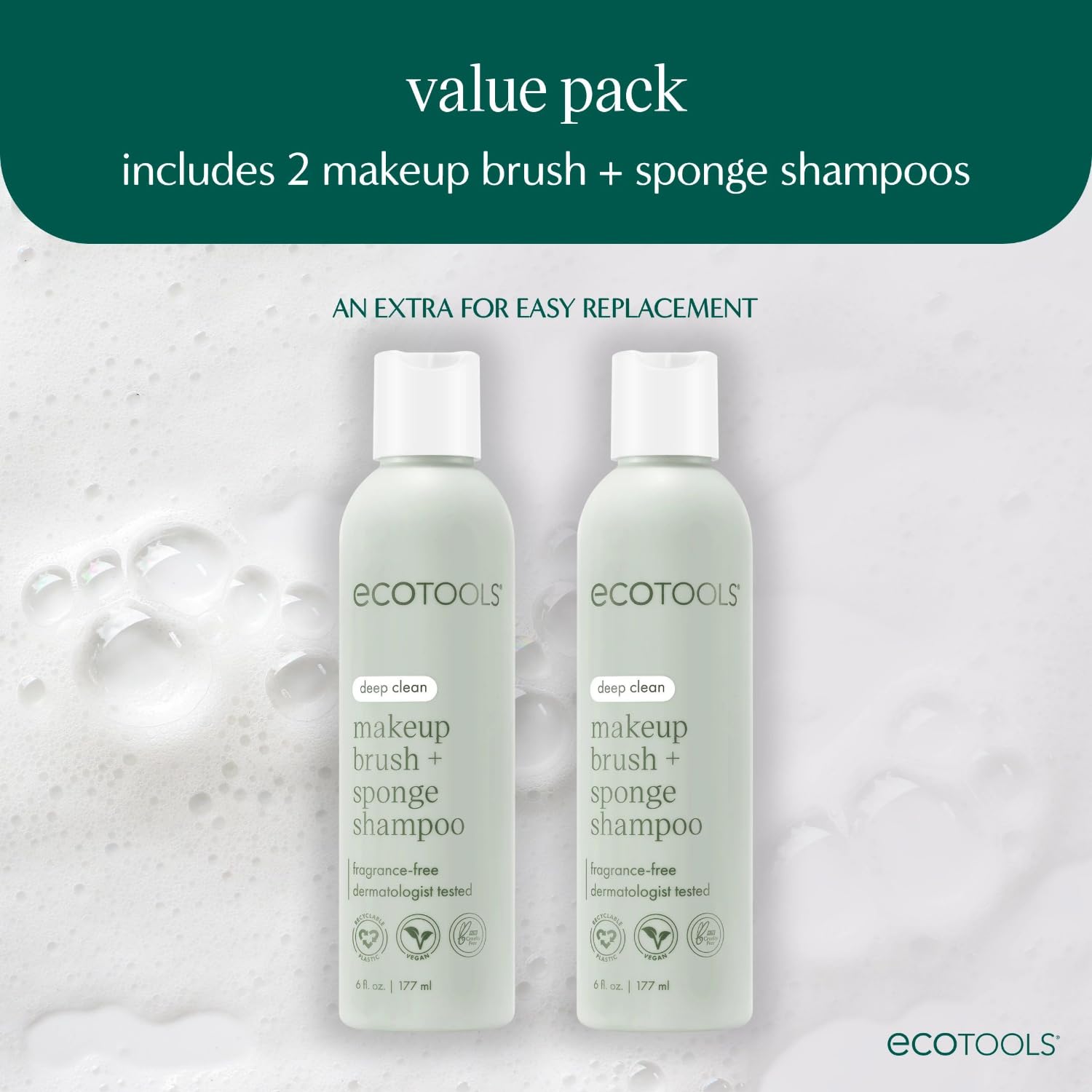 EcoTools Makeup Brush & Sponge Shampoo - Fragrance-Free Cleanser for Brushes, Sponges & Puffs, No Harsh Chemicals, Vegan & Cruelty-Free, 6 fl.oz./ 177 ml, 2 Count