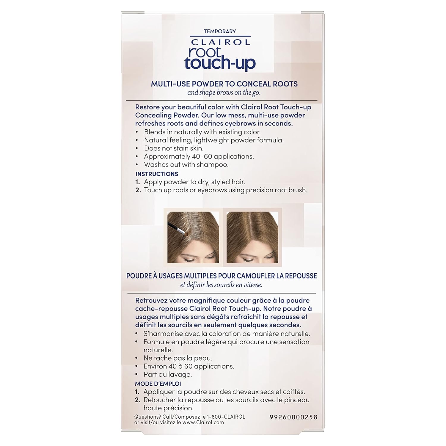- Product Benefits : Multi-Use Temporary Root Touch-Up Powder instantly covers roots and define brows in seconds!