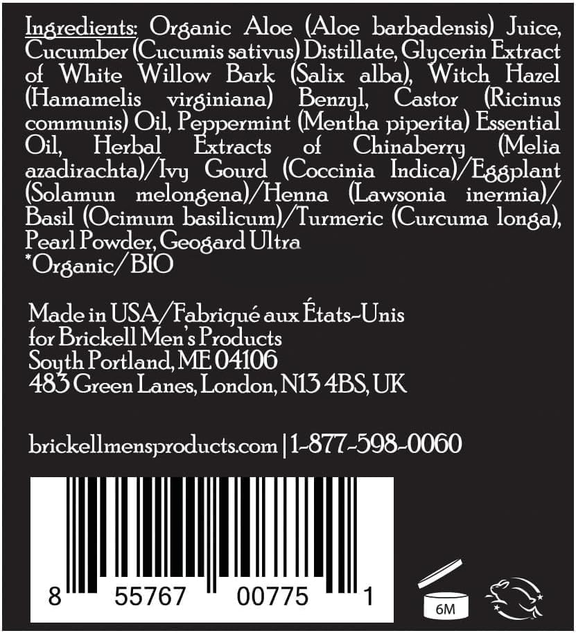 - Key Ingredients: Natural & Organic ingredients, including Cucumber, Witch Hazel, Peppermint & Aloe Vera.