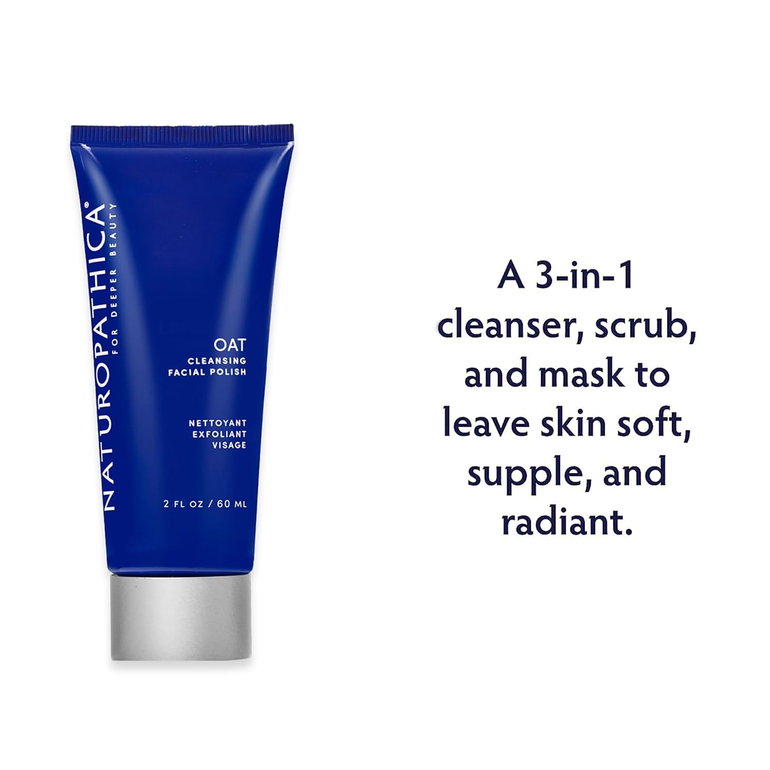 Naturopathica Oat Cleansing Facial Polish, Multi-Use Facial Cleanser, Face Scrub and Mask, Exfoliating Face Wash for Men & Women, Travel Size, 2 fl oz