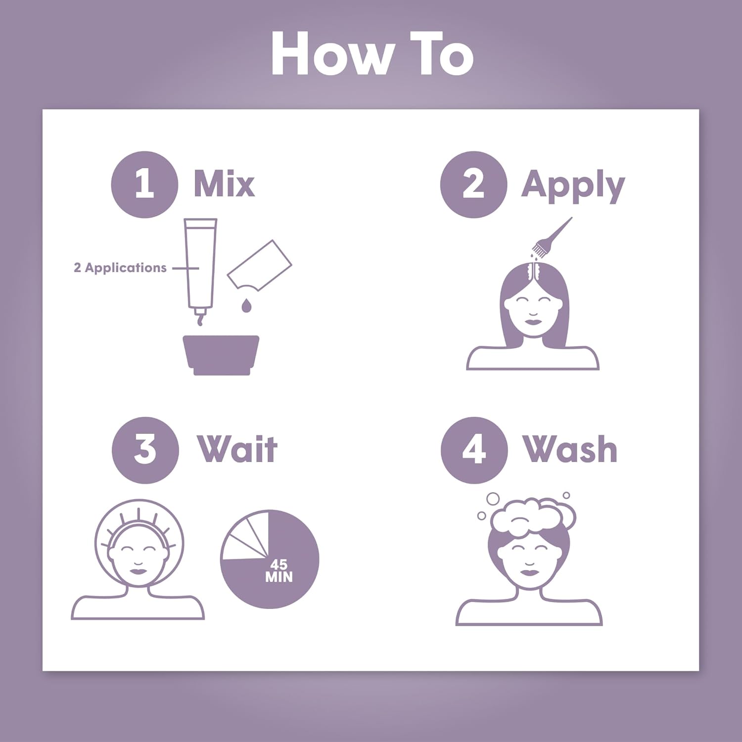 - โโWHATโS INCLUDED - Everything you need for two applications: permanent hair color, developer color activator, mixing bowl (2), gloves (2), processing cap (2), hair color applicator brush, and Color Fresh Shampoo & Conditioner samples.