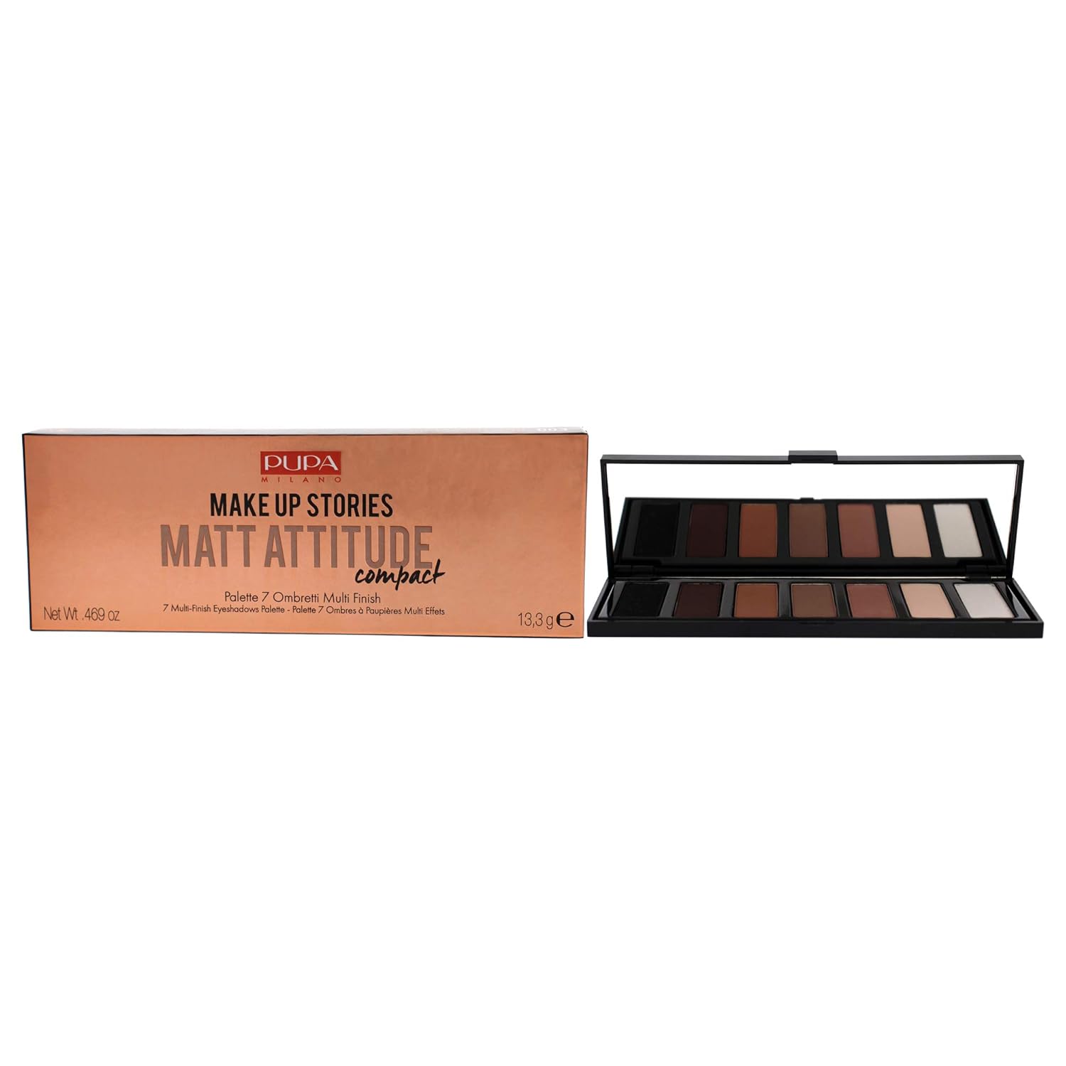 Pupa Milano Make Up Stories Eyeshadow Palette 003 Matt Attitude - 7-Shade Shadow Collection with Matte, Satin, and Metallic Color Options - High Pigment Formula - Soft, Blendable Texture - 0.469 oz
