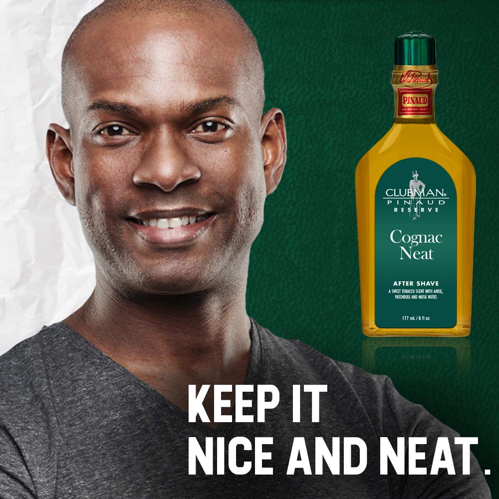 - HANDY, CONVENIENTLY SIZED: Clubman Reserve Cognac Neat After Shave is everything you need to enrich your scent and your lifestyle should you wear it right! It can be used as an aftershave to calm skin, or a cooling splash after a bath, or right before an evening out. It comes in a 6-oz bottle, and since it doesn't take much of this product to both invigorate your skin and give yourself a manly, delightful fragrance, you'll find it to last a long time without hurting your pocket!