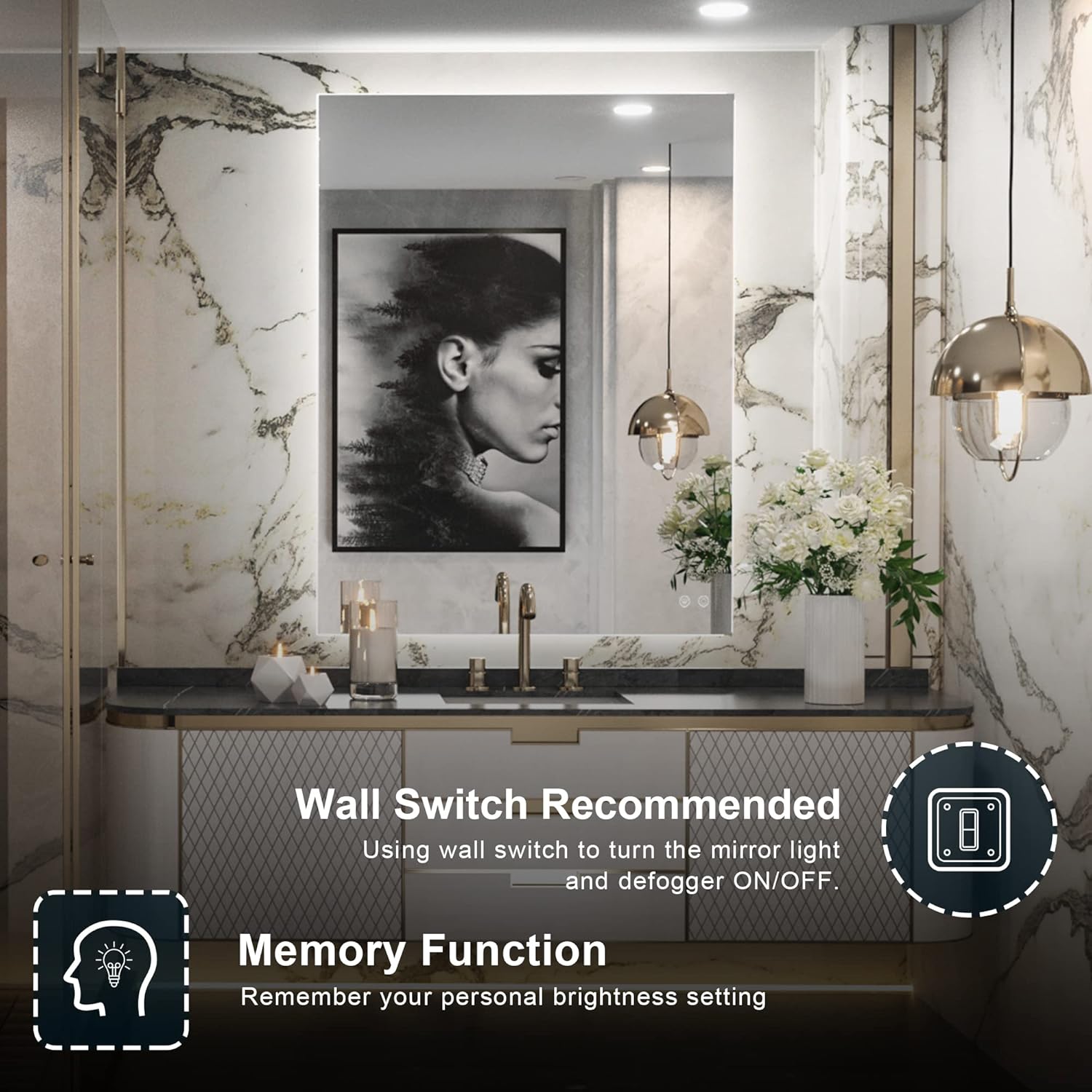 TETOTE 36 x 28 Inch LED Backlit Mirror Bathroom with Light,Anti-Fog,Dimmable,Lighted Mirror(Horizontal/Vertical) Wall Mounted Vanity Mirror