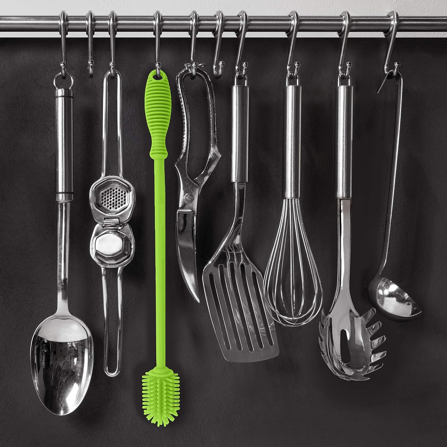 - NO MORE SCRATCHES: The easy-clean, non-scratching silicone bristles of our 12.5” long bottle cleaning brush are tough on gunk, yet gentle enough to leave your favorite vase, glass water bottle, pitcher, blender and delicate glassware clean and scratch-free