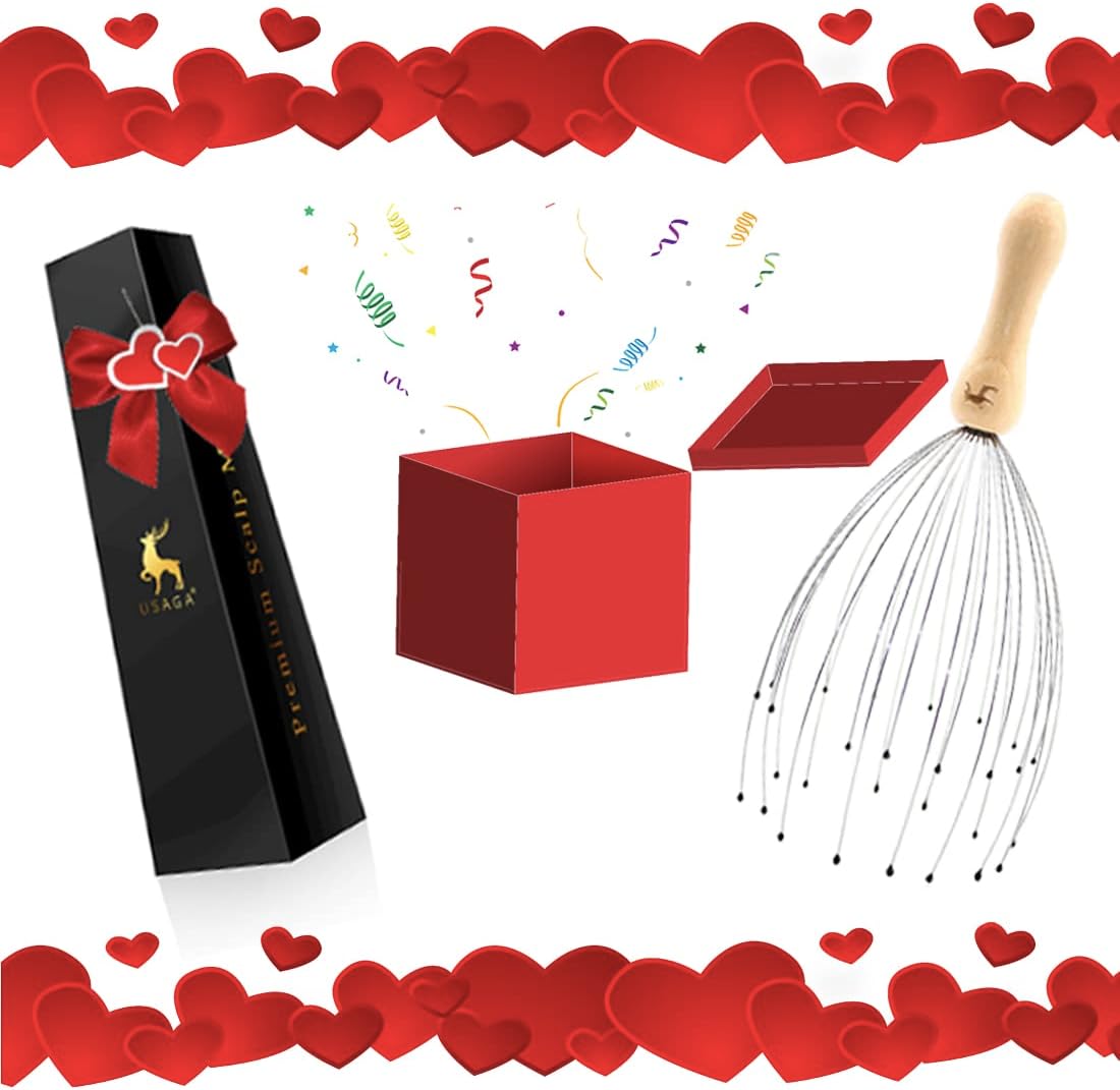 USAGA 32 Fingers Head Massager, Head Scratcher Scalp Massager for Scalp Body Relaxing Wood Handle (1 Pack)