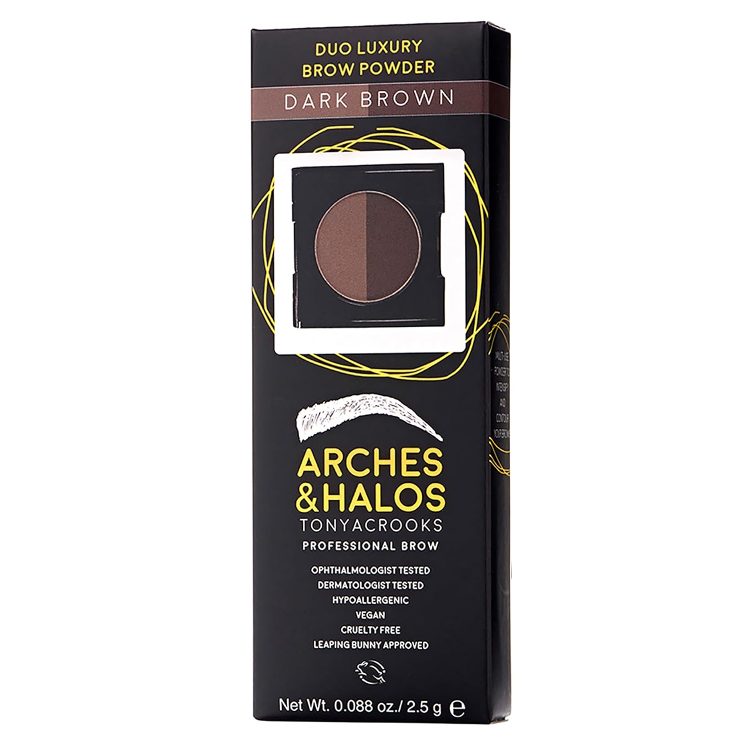Arches and Halos Duo Luxury Brow Powder - Eyebrow Shaper and Color - Powder Compact with 2 Neutral Shades - Dark Brown - 0.1 oz