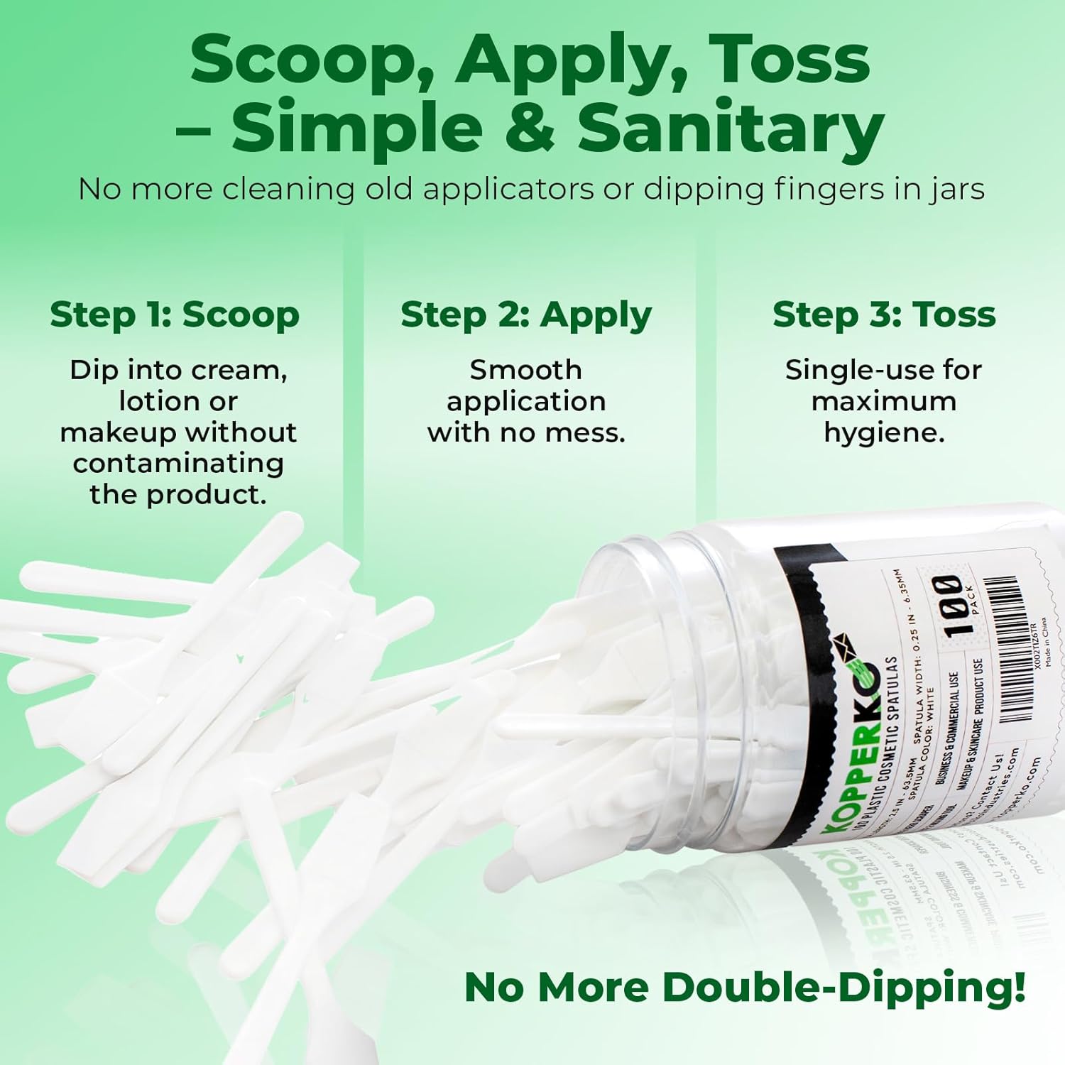 - Clean Out Your Containers: Maximize product use with our 500 pack of 0.25"x2.5" disposable fingertip spatulas. Easily extract creams, lotions, or makeup from containers, even in tight spaces, without getting product under your nails