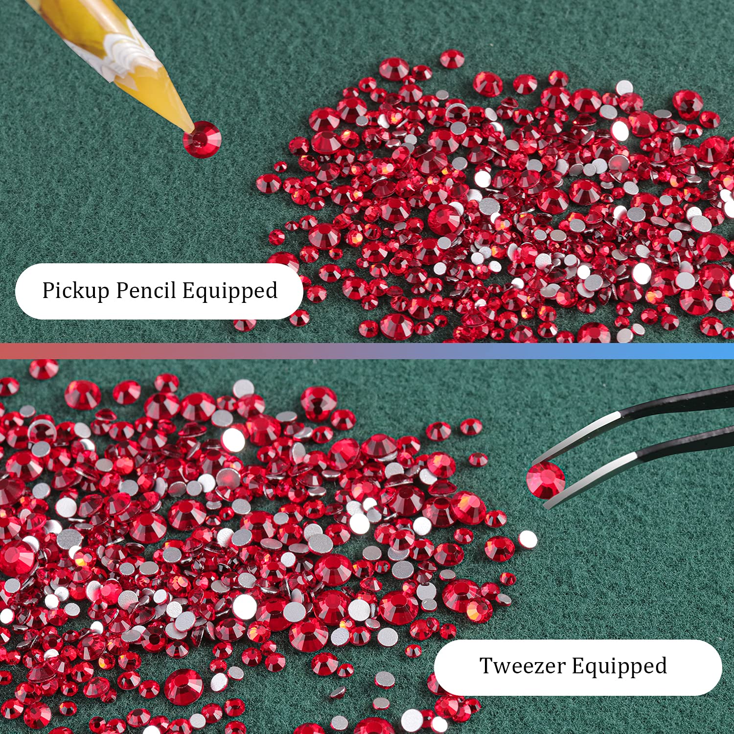 - ❤WHAT YOU WILL RECEIVE -- 1 Box of 6 Sizes Red Round Glass Nail Crystal Rhinestones Beads (Totally About 1720 PCS); 1 PCS Rhinestone Picker Pencil; 1 PCS Tweezer. The Well Equipped Rhinestone Set Is Suitable for Both Professional Nail Technician and Inexperienced Starter for Nail Art.