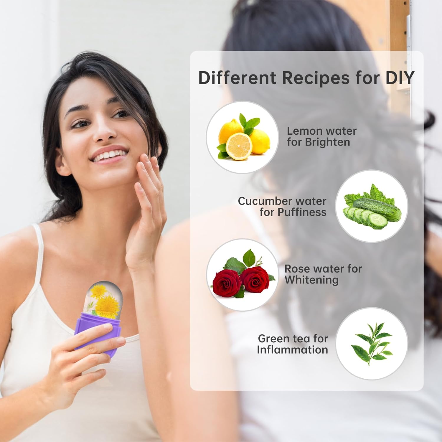 - 💙【Customize recipes & Perfect Gift】To truly improve skin performance, you can use your creativity and customize the formula according to your specific skin needs, such as lemonade for whitening, green tea for inflammation, cucumber water for reducing swelling, and coconut for improving skin Milk. You can use a juicer to squeeze them into juice, then add water, essential oils, and roses to the ice tray. Make it the best gift for your lovers.