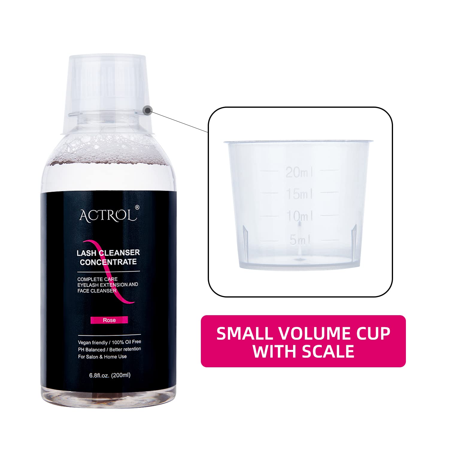 Eyelash Cleanser Concentrate 200ml Rose Professional Lash Shampoo Foaming Cleanser DIY Paraben & Sulfate Free Non-lrritating Wash for Extensions Lashes with Salon Home Care-Makes 40 Bottles