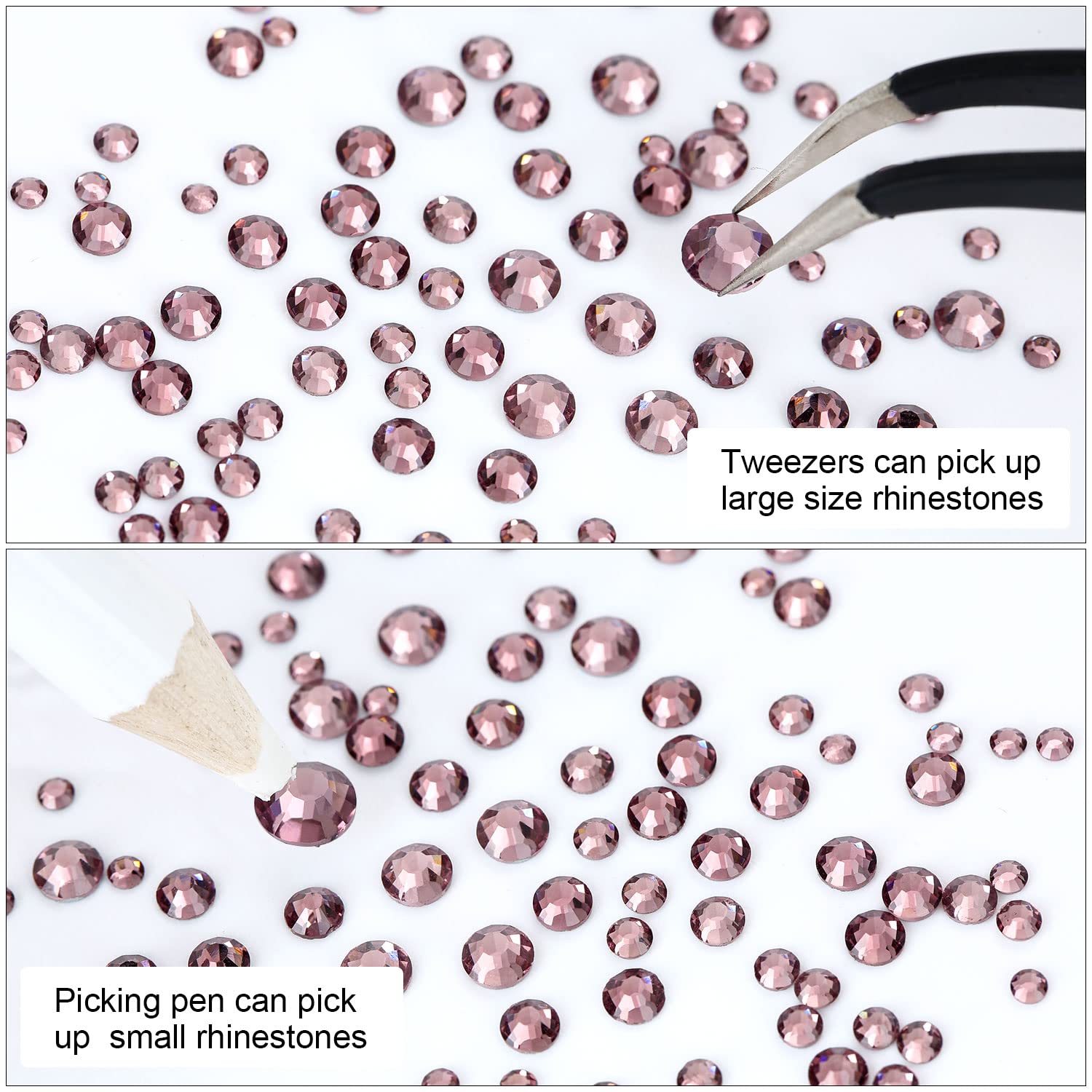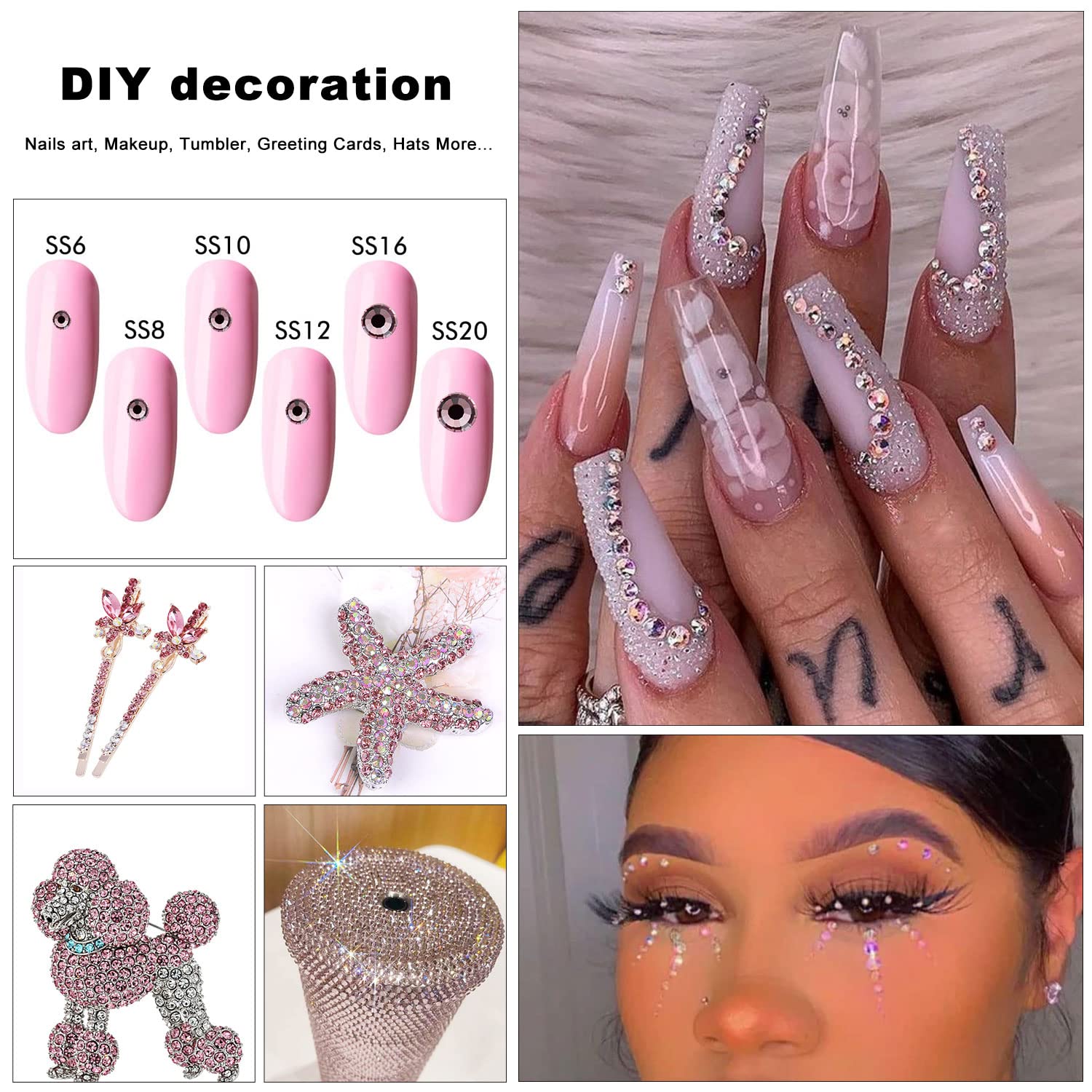 - 💎Use tweezers and Picking Pen gem picker to pick rhinestones, There is no glue on the bottom, additional nail gel is required, or other professional glue for makeup or nails. Can use E6000 super glue to fix on crafts, art decoration. not hotfix.