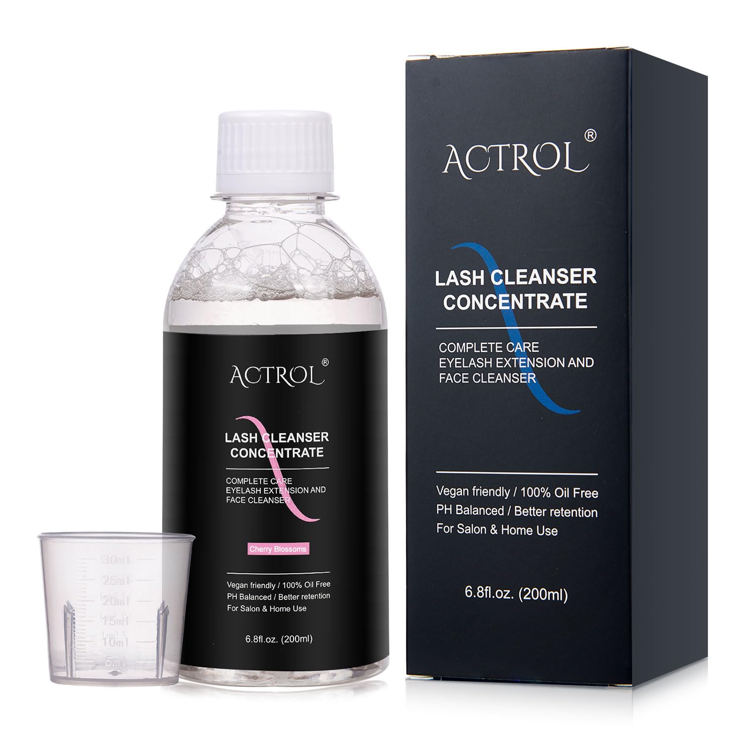 Eyelash Cleanser Concentrate 200ml Cherry Blossoms Professional Lash Shampoo Foaming Cleanser DIY Paraben & Sulfate Free Non-lrritating Wash for Extensions Lashes with Salon Home Care-Makes 20 Bottles
