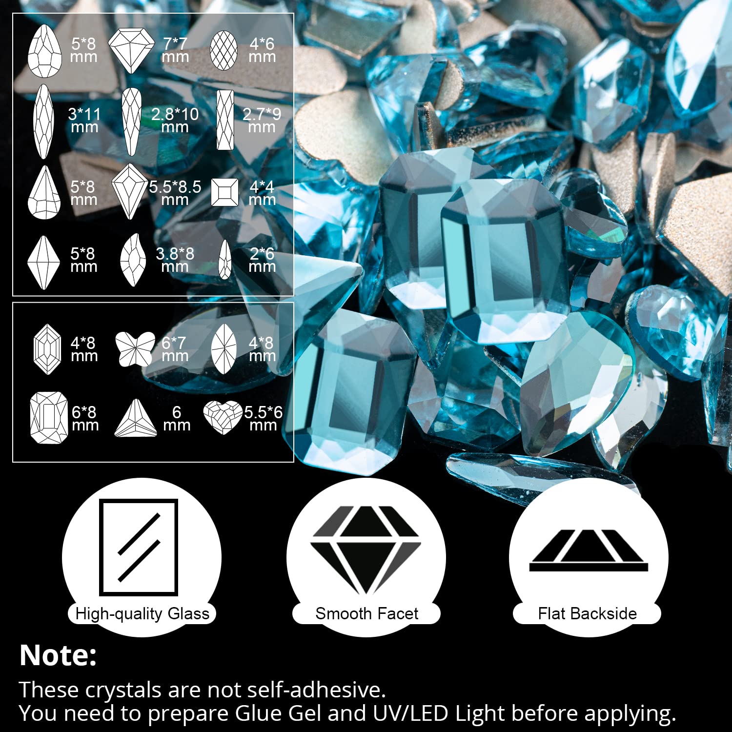 - HIGH-QUALITY & EASY TO USE -- These crystals are made of choice glass and have perfect facets, which endows them great reflection. The back of the gemstones is flat and is easier to be applied to the nails. We also equip the package with convenient dotting pen and tweezer for your application.