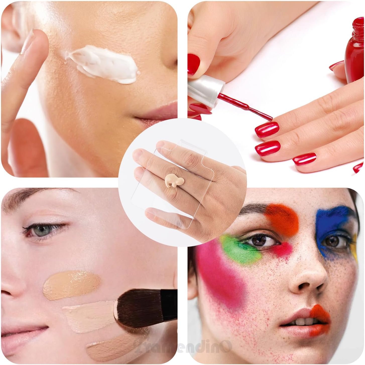 Framendino, 6 in 1 Set Hand Makeup Mixing Palette, Makeup Plate for Foundation with Spatula Makeup Artist Tool for Mixing Foundation Eye Shadow Nail Art for Women