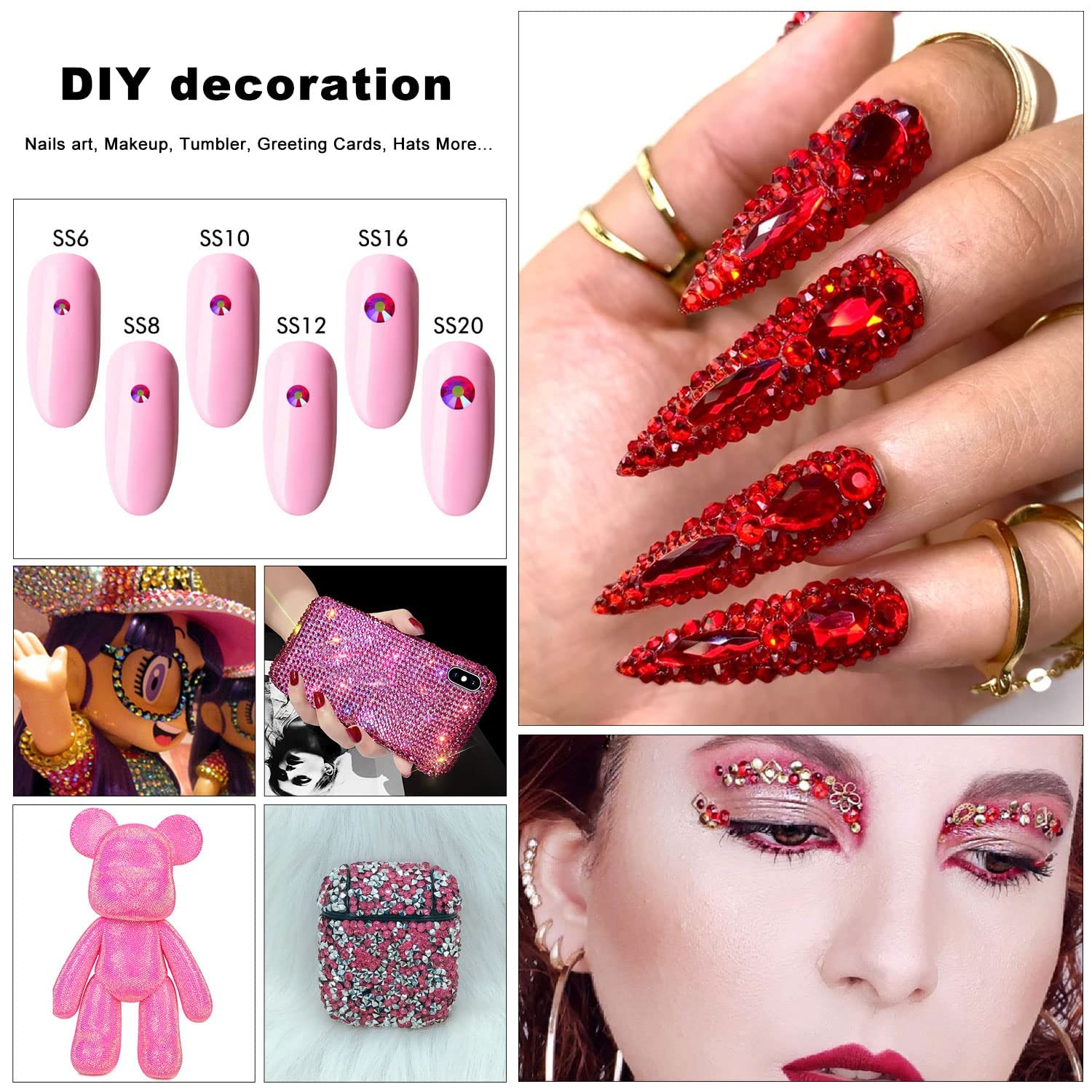 - 💎How to use: Tweezers and Picking Pen gem picker to pick rhinestones, there is no glue on the bottom of the rhinestones, additional nail gel is required, or other professional makeup or nail glue.