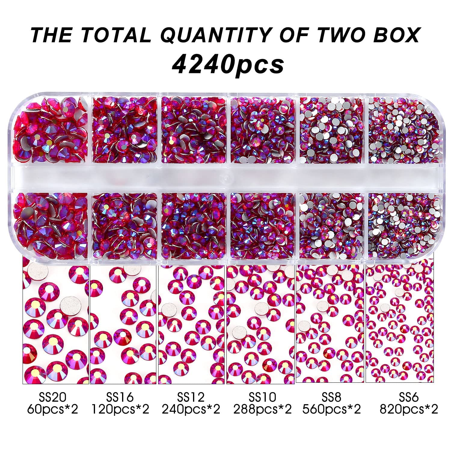 4240Pcs lt.siam AB Flatback Rhinestones 6 Sizes Crystal Diamonds for Nail Art Crafts Clothes Shoes with Tweezers and Picking Pen