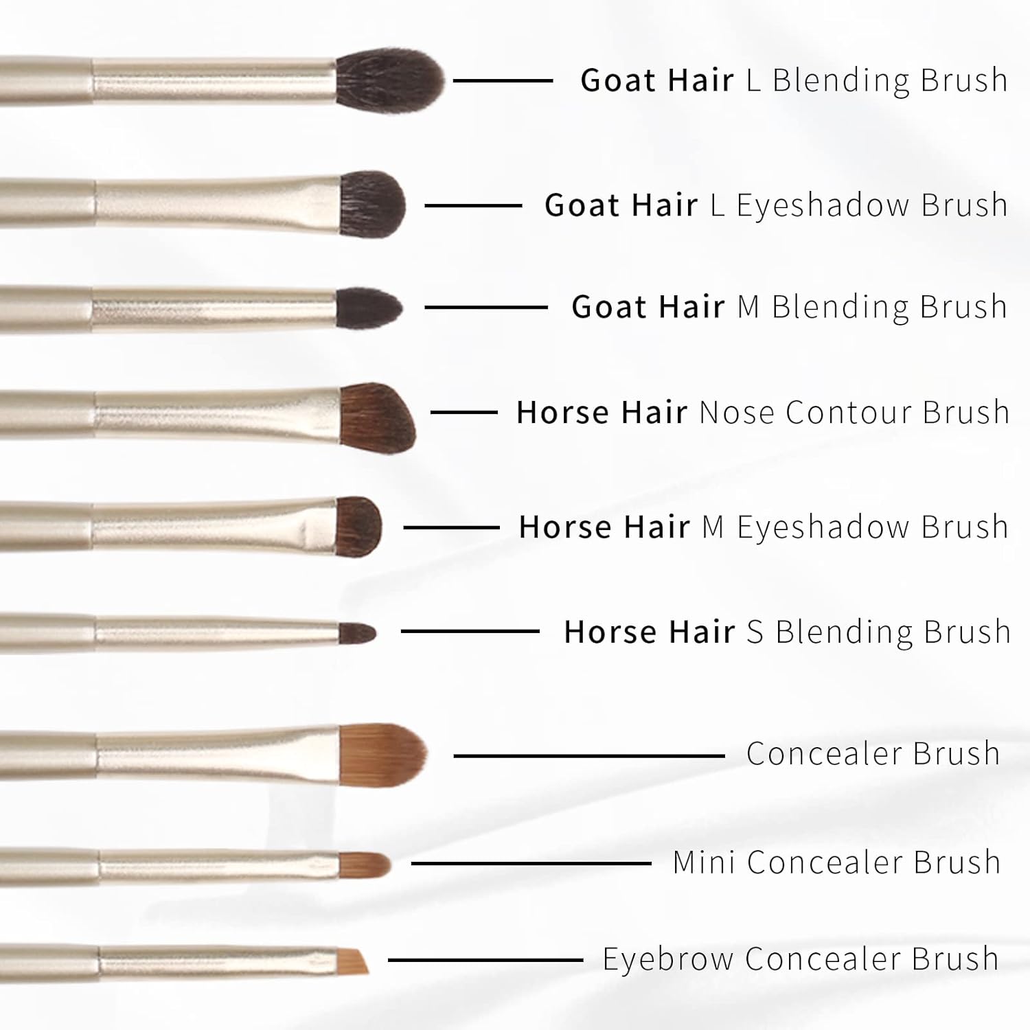 - ♥【Natural Goat Hair & Horse Hair Eye Makeup Brushes Set】▬ Deluxe Quality Hair,Skin-friendly,Soft and Smooth,Easy to Maintain,Premium Animal Hair,Real Hair Eyeshadow Brushes Travel Set, Flat Concealer Brush Under Eye & Lip Brush, Meet the Needs of Makeup. Nice Natural Eyeshadow Brush Set Organic. Grateful Skin Friendly Makeup Brush Gift Set.