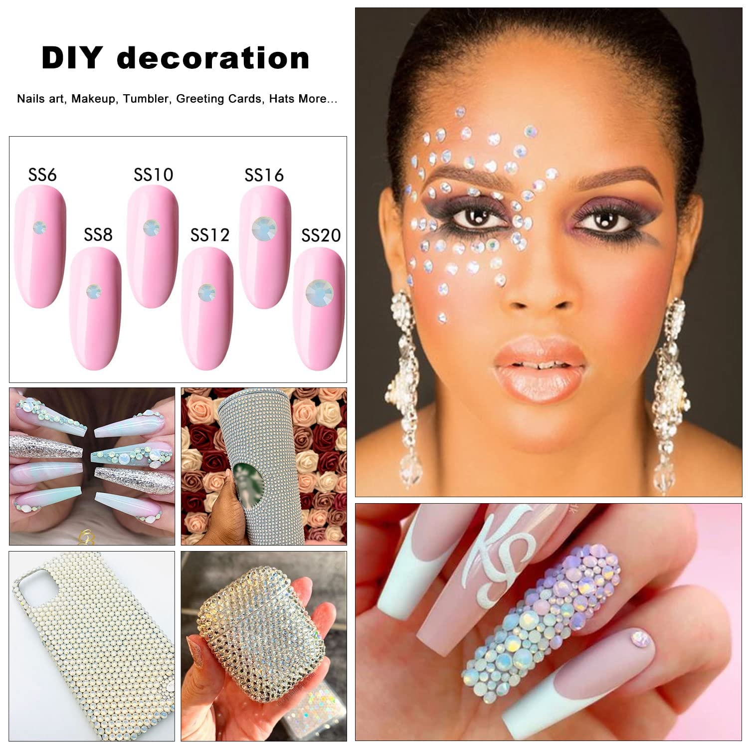 - 💎Use tweezers and Picking Pen gem picker to pick rhinestones, There is no glue on the bottom, additional nail gel is required, or other professional glue for makeup or nails. Can use E6000 super glue to fix on crafts, art decoration. not hotfix.