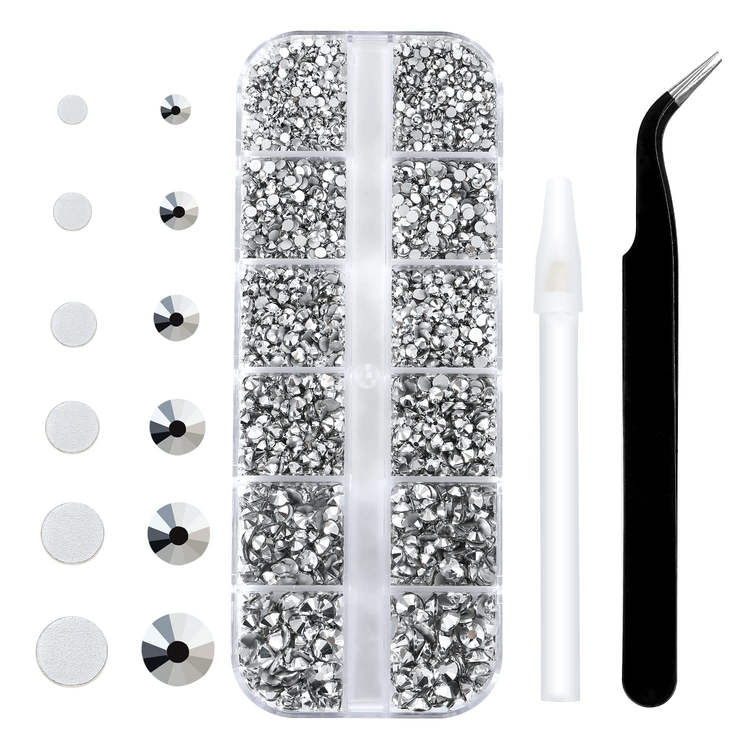 - 💎Product Packaging: Box Packaging SS6 2MM - 1680 Pcs, SS8 2.4MM - 1120 Pcs, SS10 2.8MM - 600 Pcs, SS12 3MM - 480 Pcs, SS16 4MM - 240 Pcs, SS20 4.8MM - 120 Pcs, 1 pcs Tweezers and 1 pcs Picking Pen.