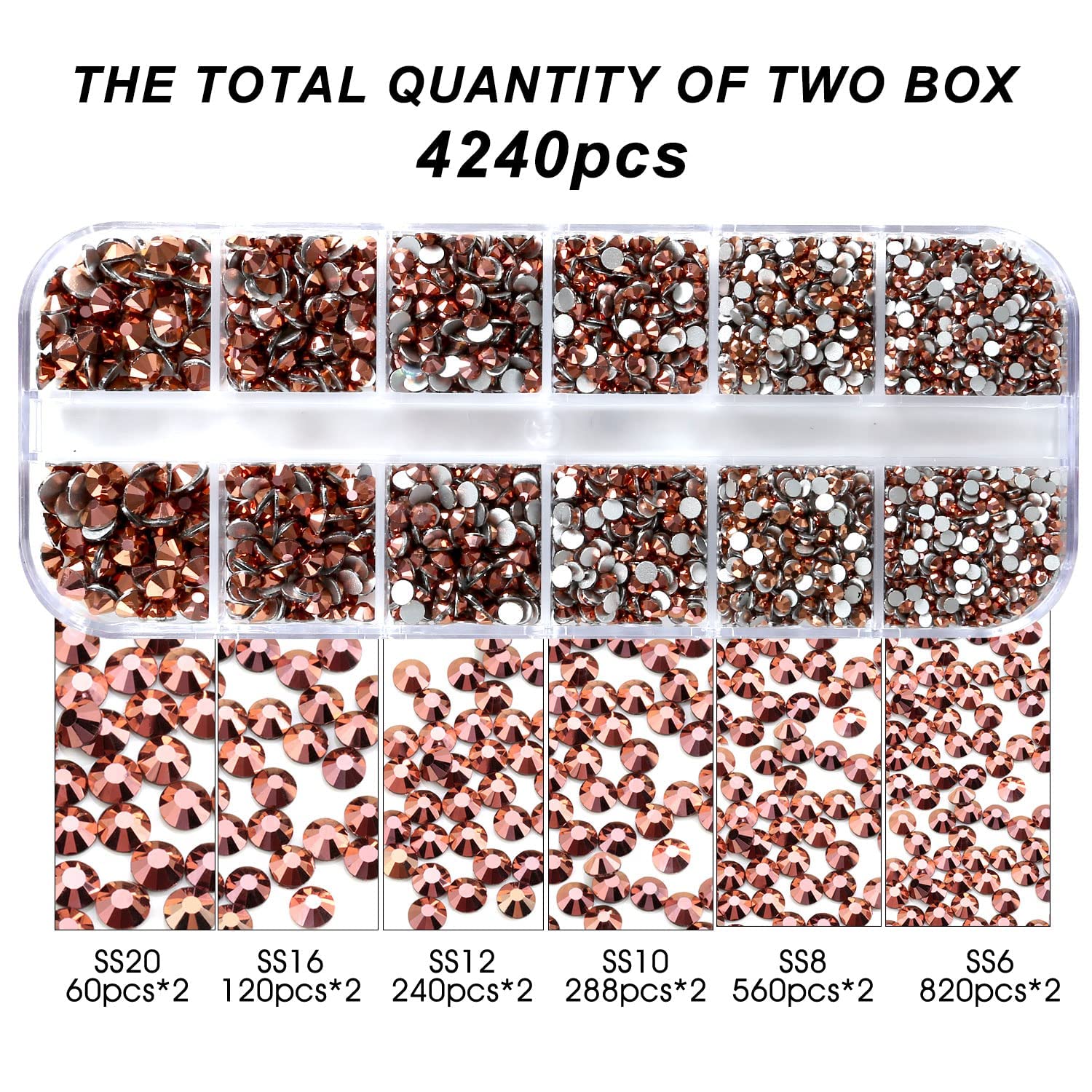4240Pcs Rosegold Flatback Rhinestones 6 Sizes Crystal Diamonds for Nail Art Crafts Clothes Shoes with Tweezers and Picking Pen