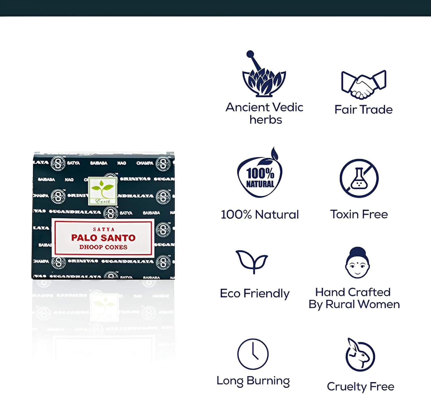- ā 144 Dhoop Cones in 12 Boxes: Each pack contains 12 boxes, each filled with 12 earthy and soothing palo santo-scented dhoop cones, providing you with a total of 144 cones for long-lasting use.