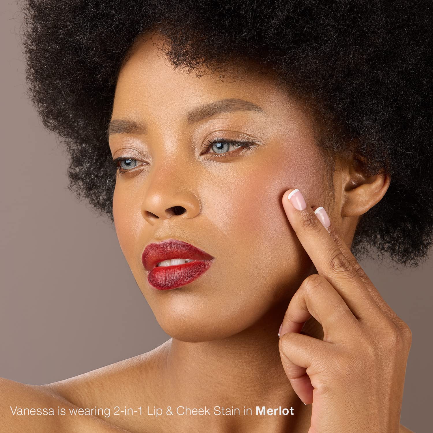 Mineral Fusion 2-in-1 Lip & Cheek Stain Merlot, 0.10 fl oz, Deep Cherry Red hydrating, long-lasting, matte lip and cheek color