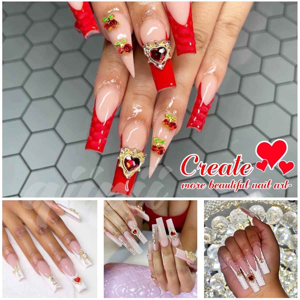 - ❤【1 Box 6 Kinds Delicate Luxury Style Design Nail Art Supplies】The crystal red luxury nail art supplies has 6 different design, 2 pair per design, designed with heart, waterdrop, prismatic, rectangle, and other shapes, surrounded with small rhinestones, looks luxurious and bling. Our Luxury nail decorations are made of 3D alloy, hard and not easily break, have delicate surfaces, light and easy to use for a long time, suitable for experienced manicurists and learners.