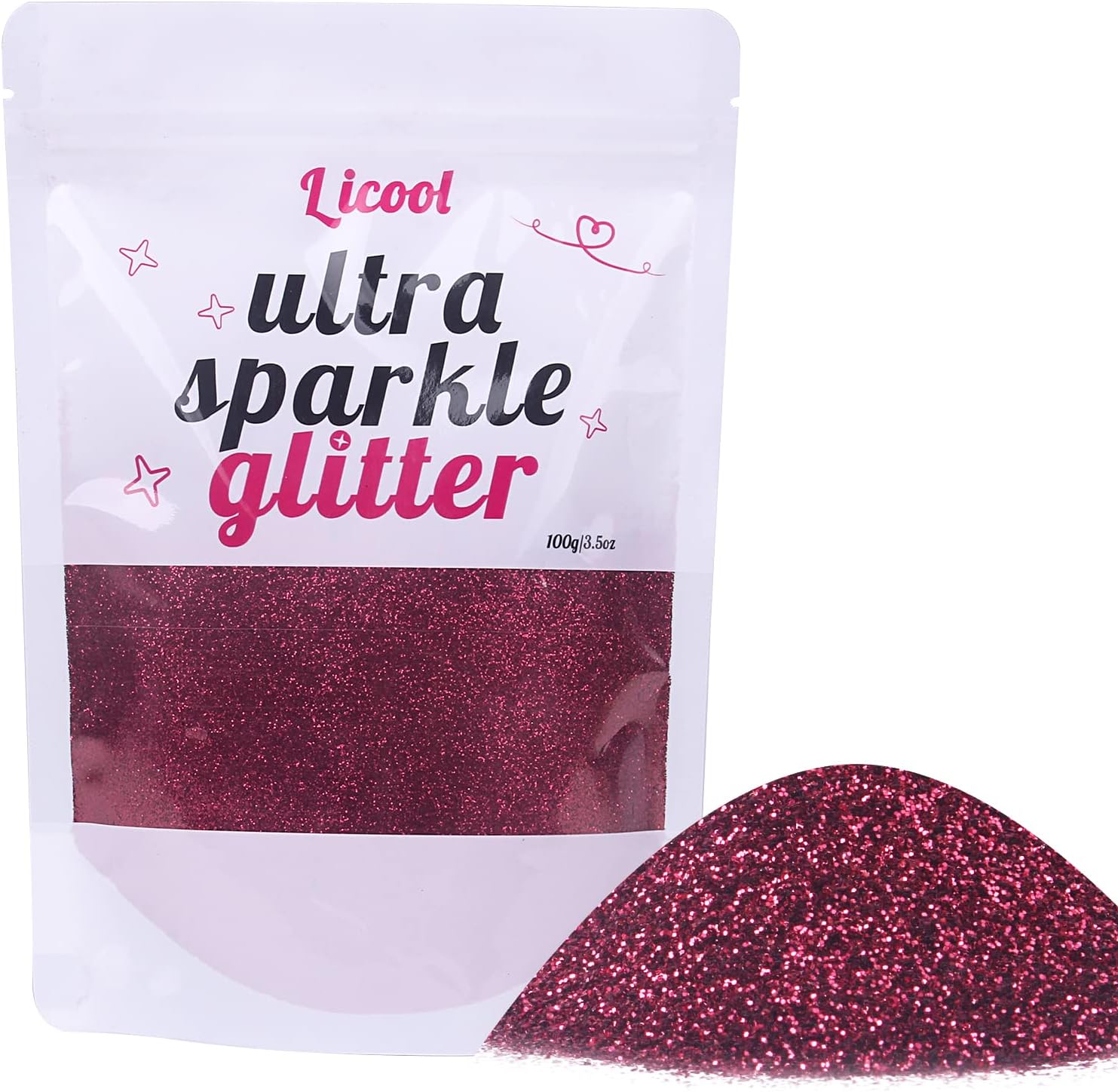 Fine Glitter for Nail Art, 100g/3.5oz Extra Fine Glitter Powder Packs for Epoxy Resin Art, Craft Glitter for Tumblers Candle Slime Making, Festival Body Face Eyeshadow Nail Glitter (Wine)