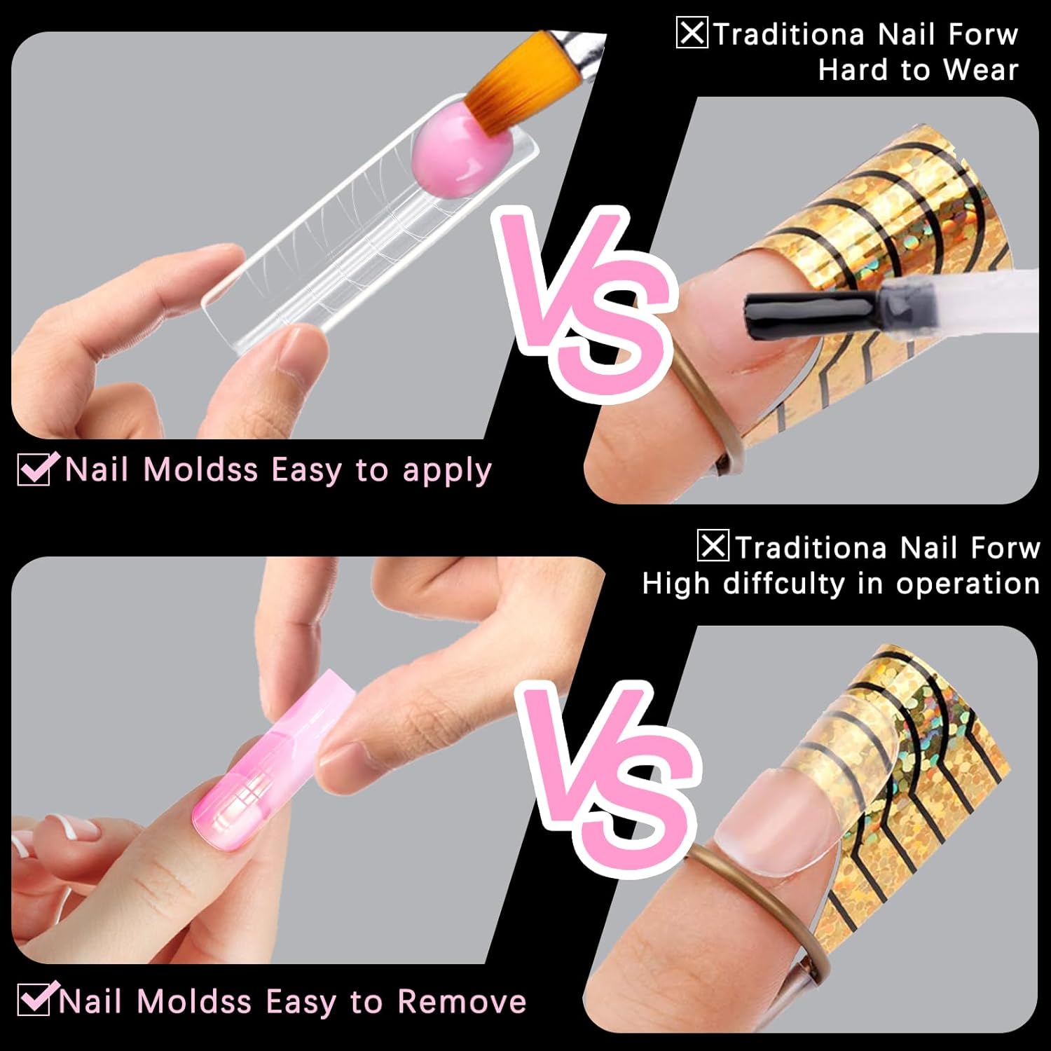 120 Pcs Poly Extension Gel Dual Nail Forms - Long U-Shaped Thickened Coffin Nail Molds for Gel Manicure & Salon DIY at Home