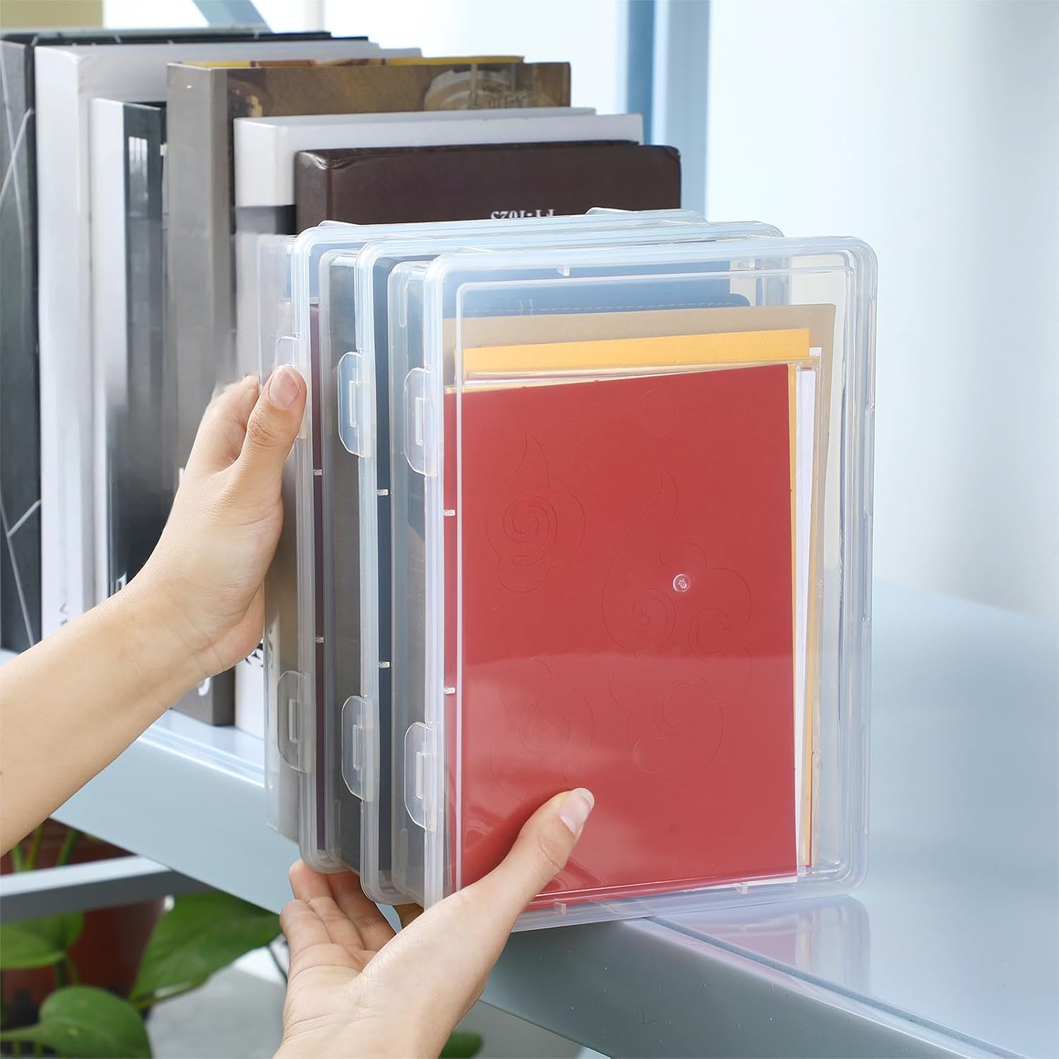 Qunclay 6 Pcs 9 x 8.7 x 2 inches Plastic Storage Box with Lid Multipurpose Craft Organizers Plastic Containers Clear Pencil Case Art Satchel Storage Case for Beads Ornaments Crafts Accessories