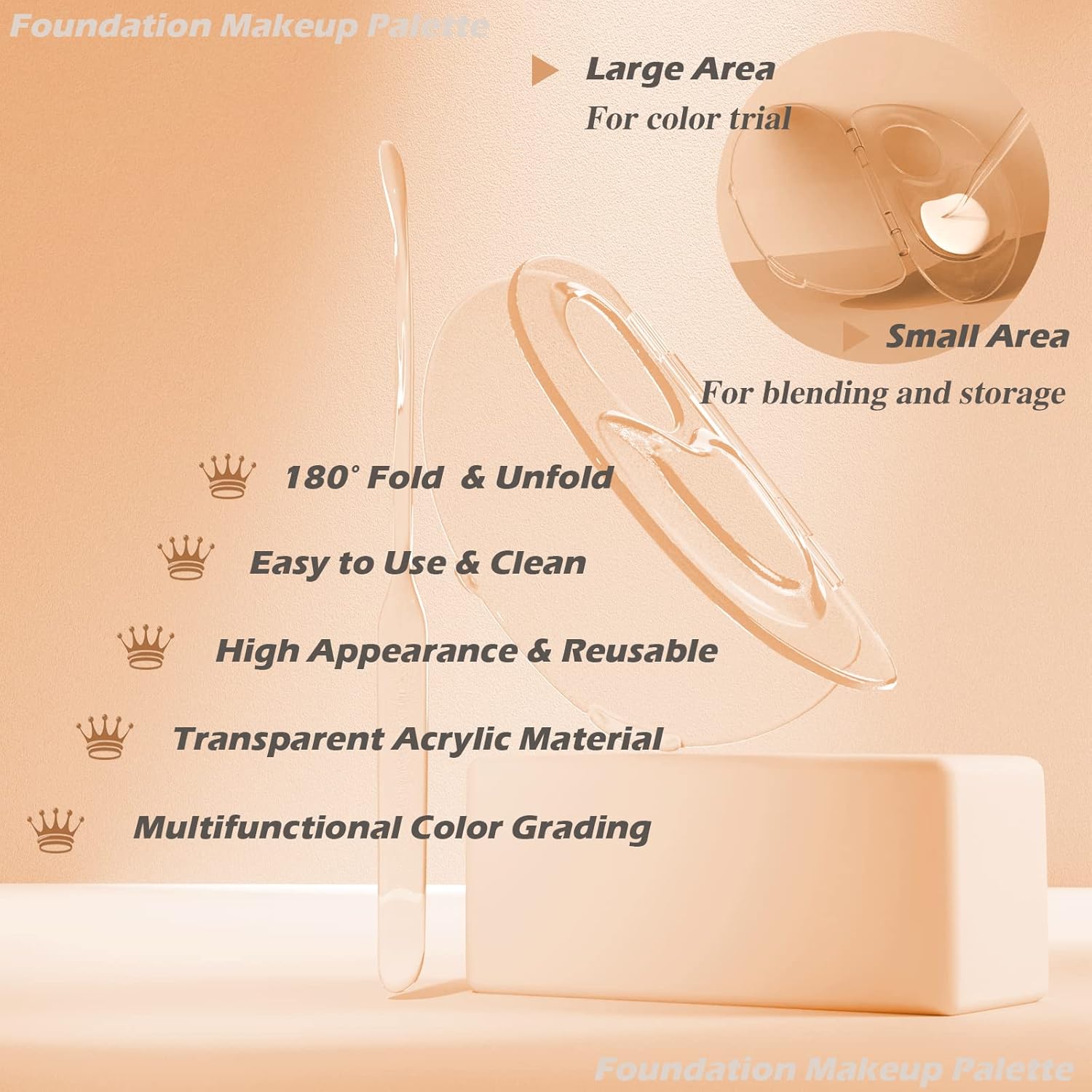 - 💄【Folding Design】Transparent makeup palette can be unfolded and folded at 180 degrees, and the folded storage takes up less space. Acrylic empty palette can store liquid foundation and concealer for up to 24 hours without contamination.