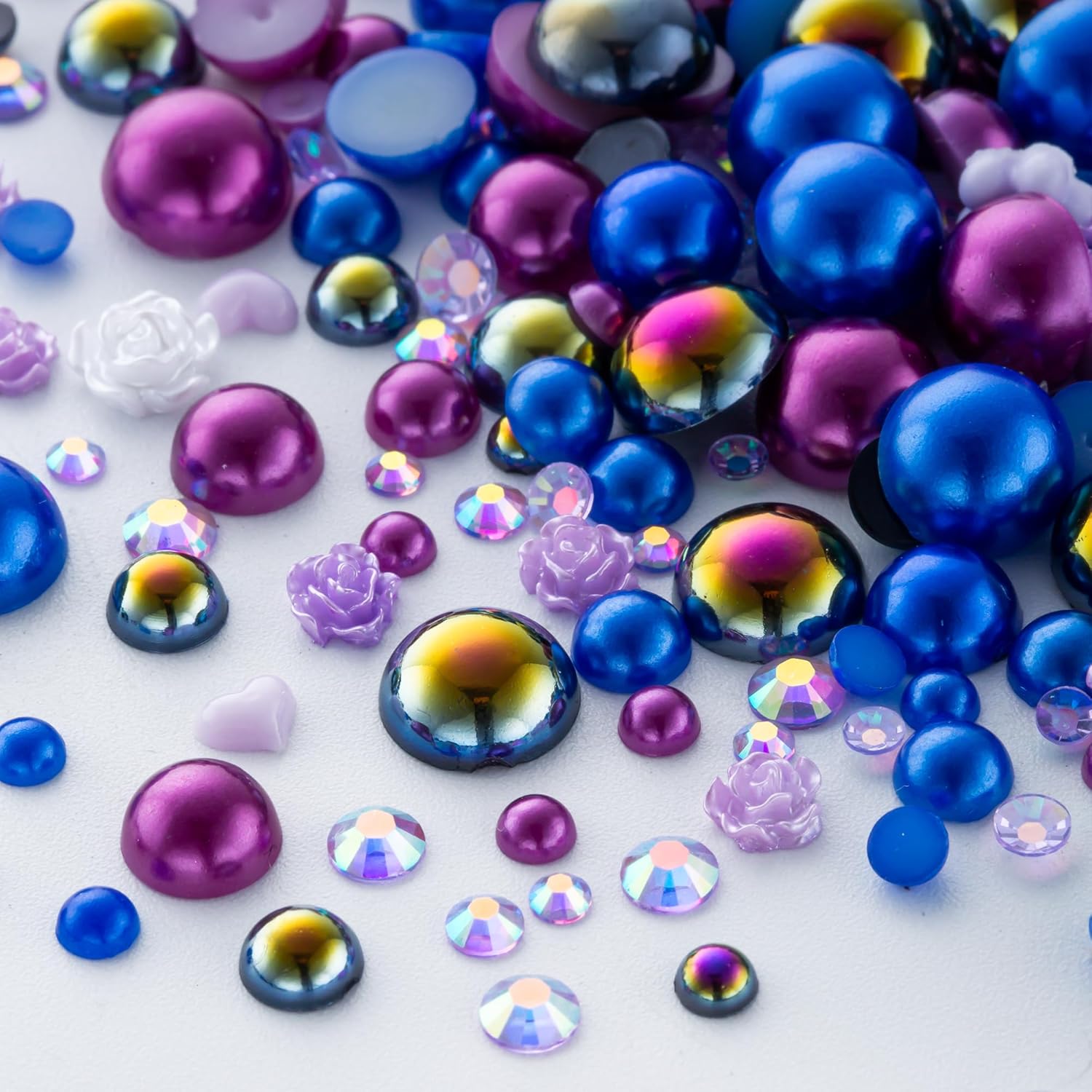 - Assortment Sizes: The flatback half pearls come in a mixture of colors and sizes of 3/4/5/6/8/10mm. The flatback rhinestones are resin rhinestones in sizes of 2/3/4/5/6mm. These mixes are such a great way to get an assortment of colors and sizes without having to buy each item individually
