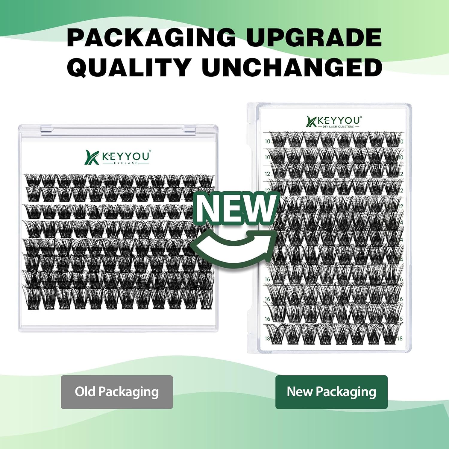 - 【Soft&Comfortable】KEYYOU lash cluster are made of imported materials,the stem line is thinner and softer, the eyelash cluster are lighter and more comfortable to wear.96 clusters in one tray ,more cost-effective.