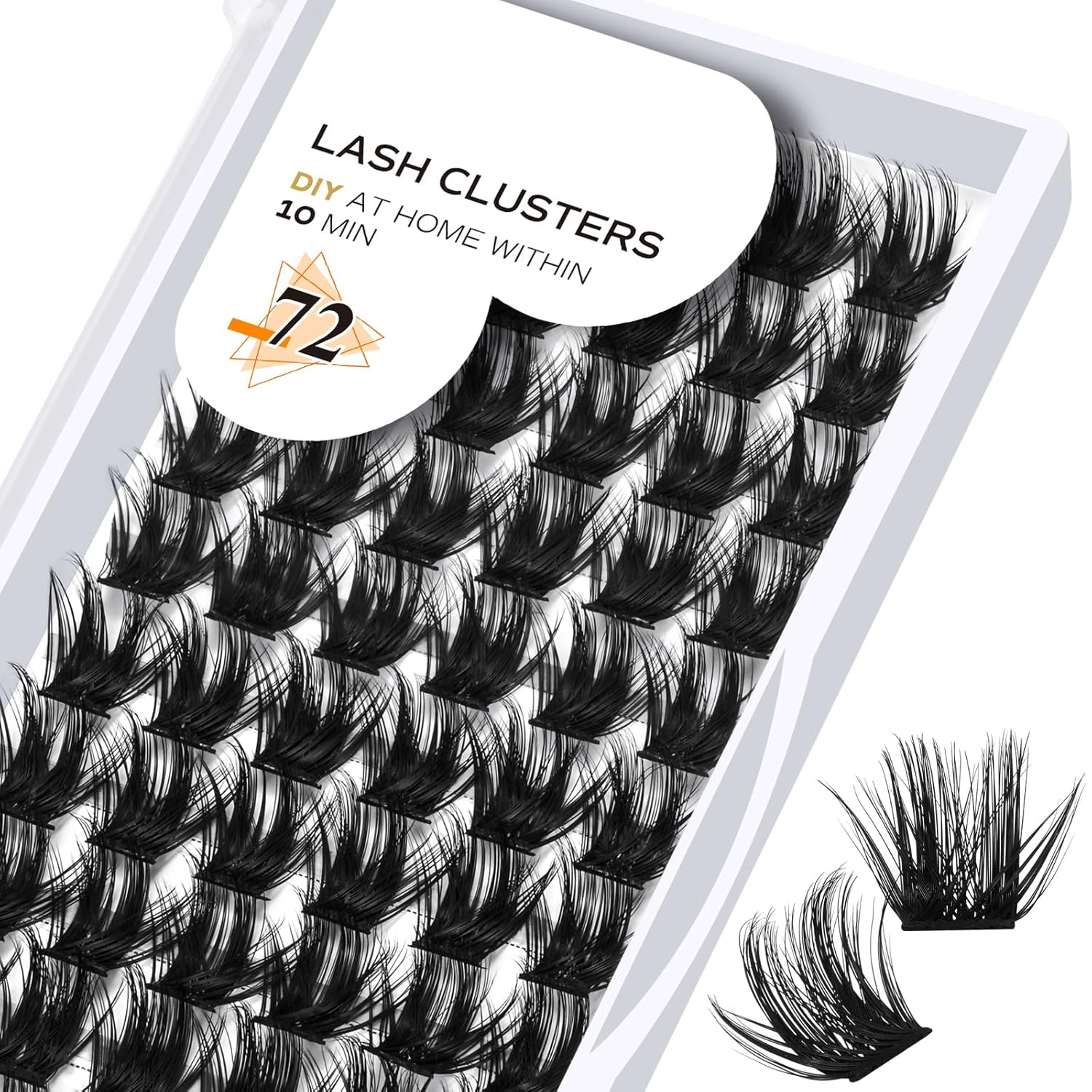 - 【Lash Clusters DIY at Home】: 72 clusters in one tray. You can apply cluster lashes at home by yourself, and create a recent super popular manga effect. Easy to put lashes on, gorgeous results, and lash clusters are not easily fall apart. Clusters take less time to complete each eye. Now save so much money and time.