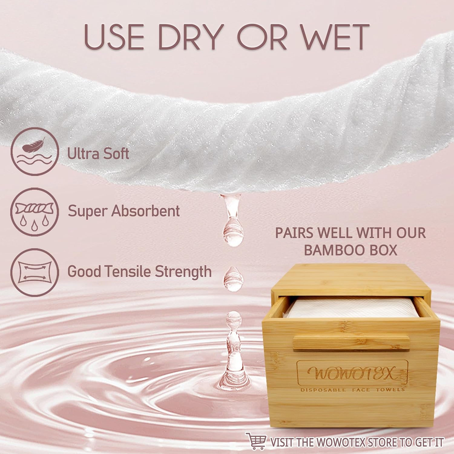 - EXCELLENT FABRIC : WOWOTEX disposable face towels are 100% PURE COTTON which are 100% BIODEGRADABLE. WOWOTEX disposable face towel can be used wet or dry, our face towel is super soft and highly absorbent, with good tensile strength, which can bring users a high quality user experience.