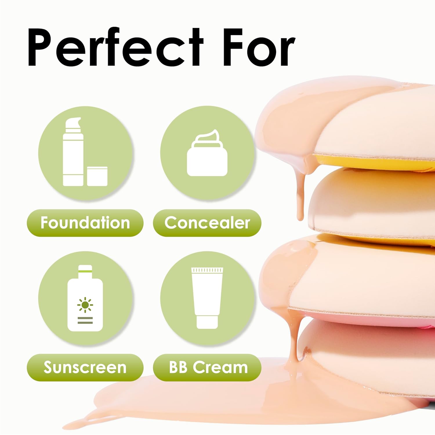 - Versatile: Makeup Sponges Can Be Used With A Variety Of Products, Including Liquid Foundation, Concealer, Cream Blush, And Powder. Their Soft, Flexible Texture Allows For Seamless Blending And Coverage