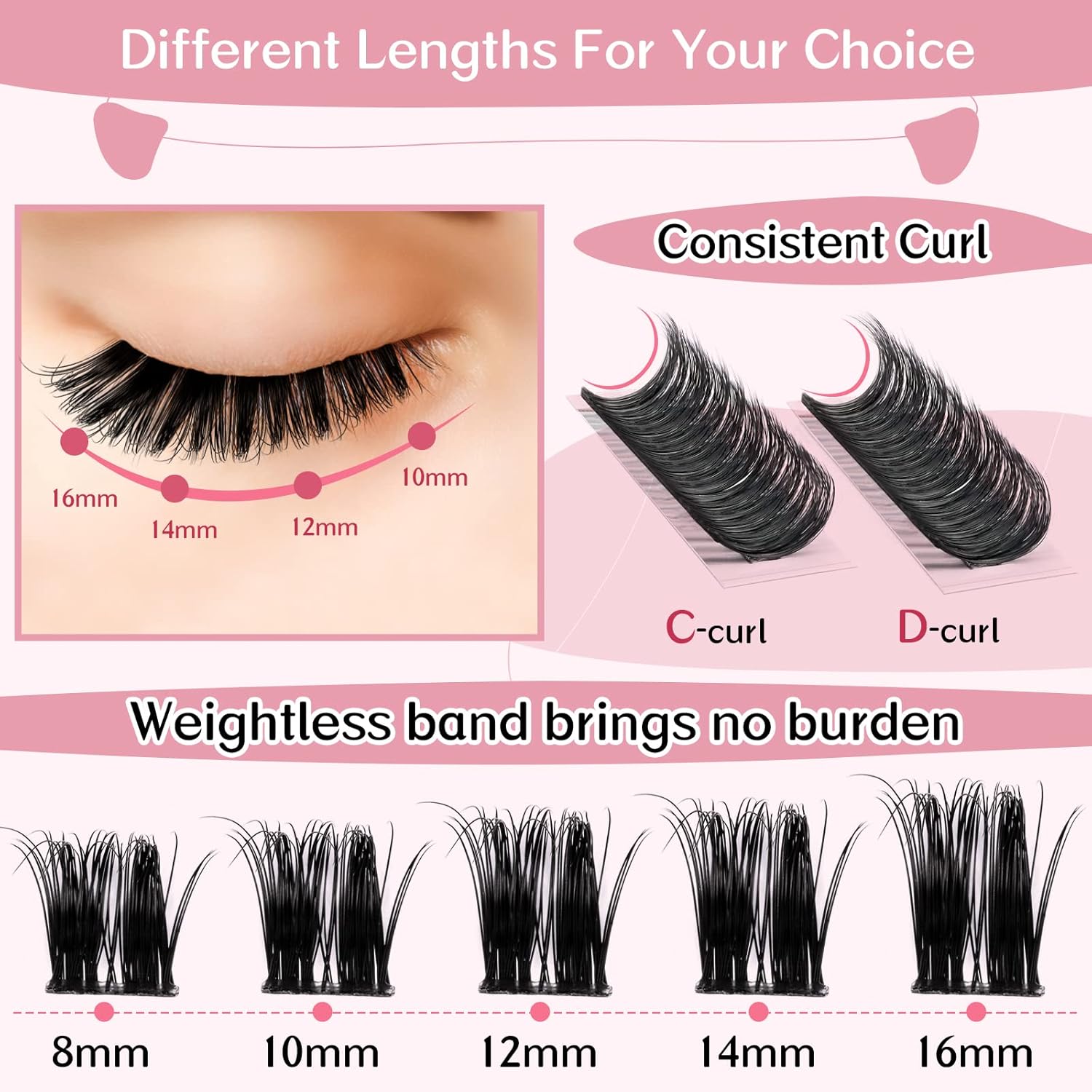 - Bring salon to your home: Pro LashBeauty Lash clusters are easy to apply. Divided individual Lashes into sections, easy to pick up and apply by yourself. You can apply the eyelashes with different lengths and styles according to different occasion. Save money from doing eyelash extensions. You will become a master of DIY lash extensions with a little practice!
