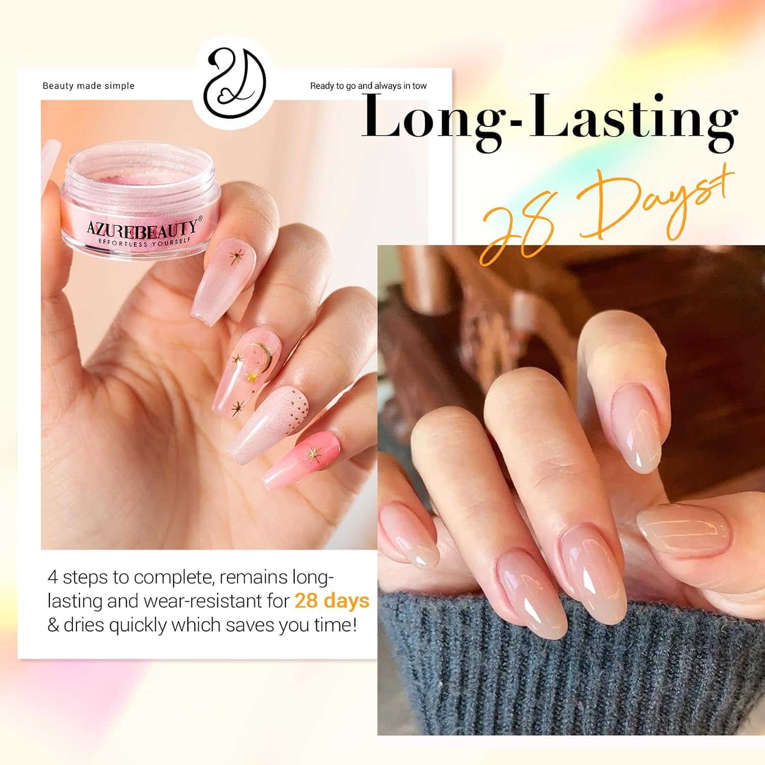 - 【Long Lasting Vibrant Shades】Azure nail dip powder kit starter set is long-lasting and anti-chipping, anti-peel off. The color is full and natural-looking, light, and has an impeccable shine finish. It can keep the nail art gorgeous and shiny for more than about 28 days with proper application.