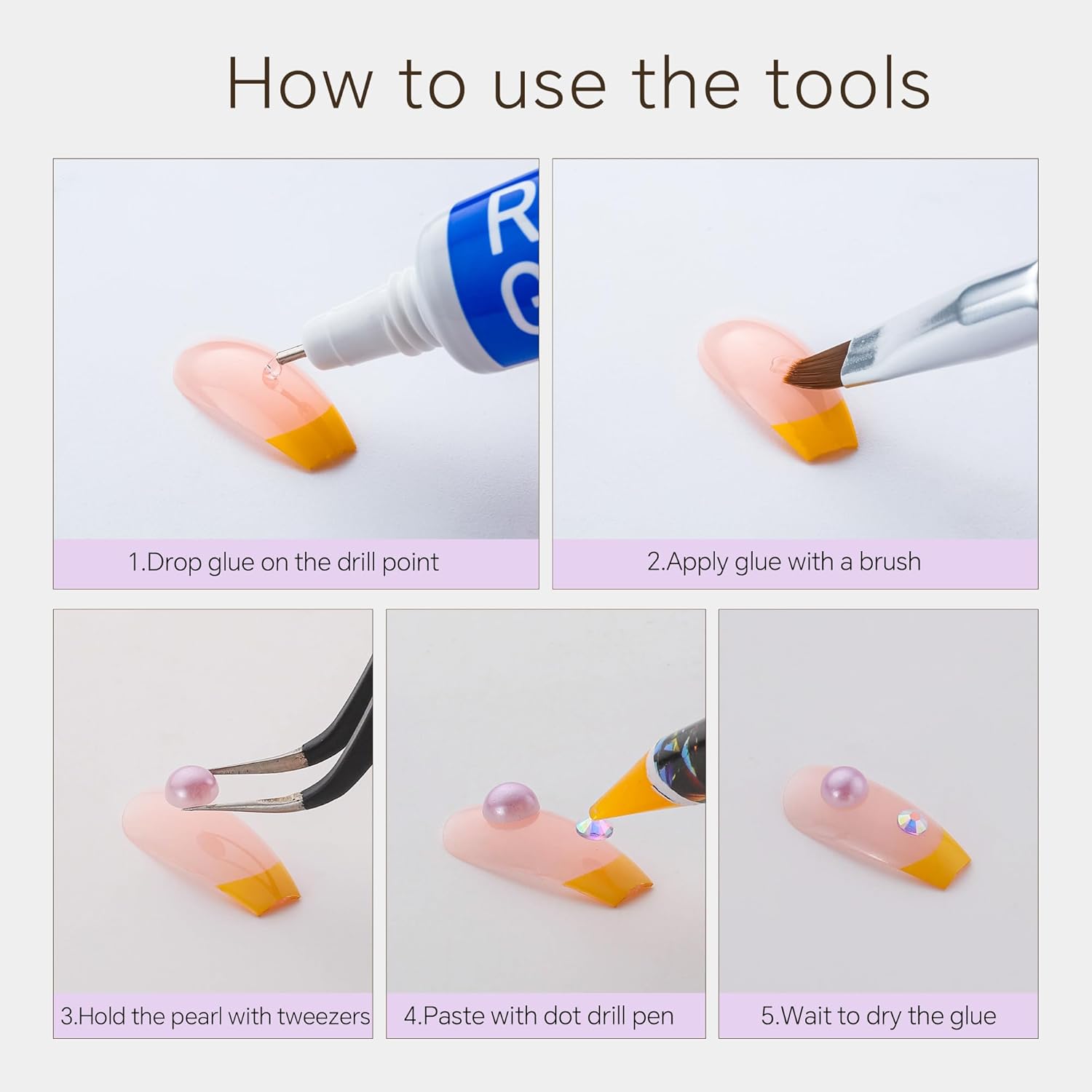 - Useful tools - These pearls and rhinestones have a flat back, which is excellent for easy placement.and you can pick up any large or small pearls and rhinestones with the crayons we bring along. And use the brush to smooth out the Gel , these tools will work very well.