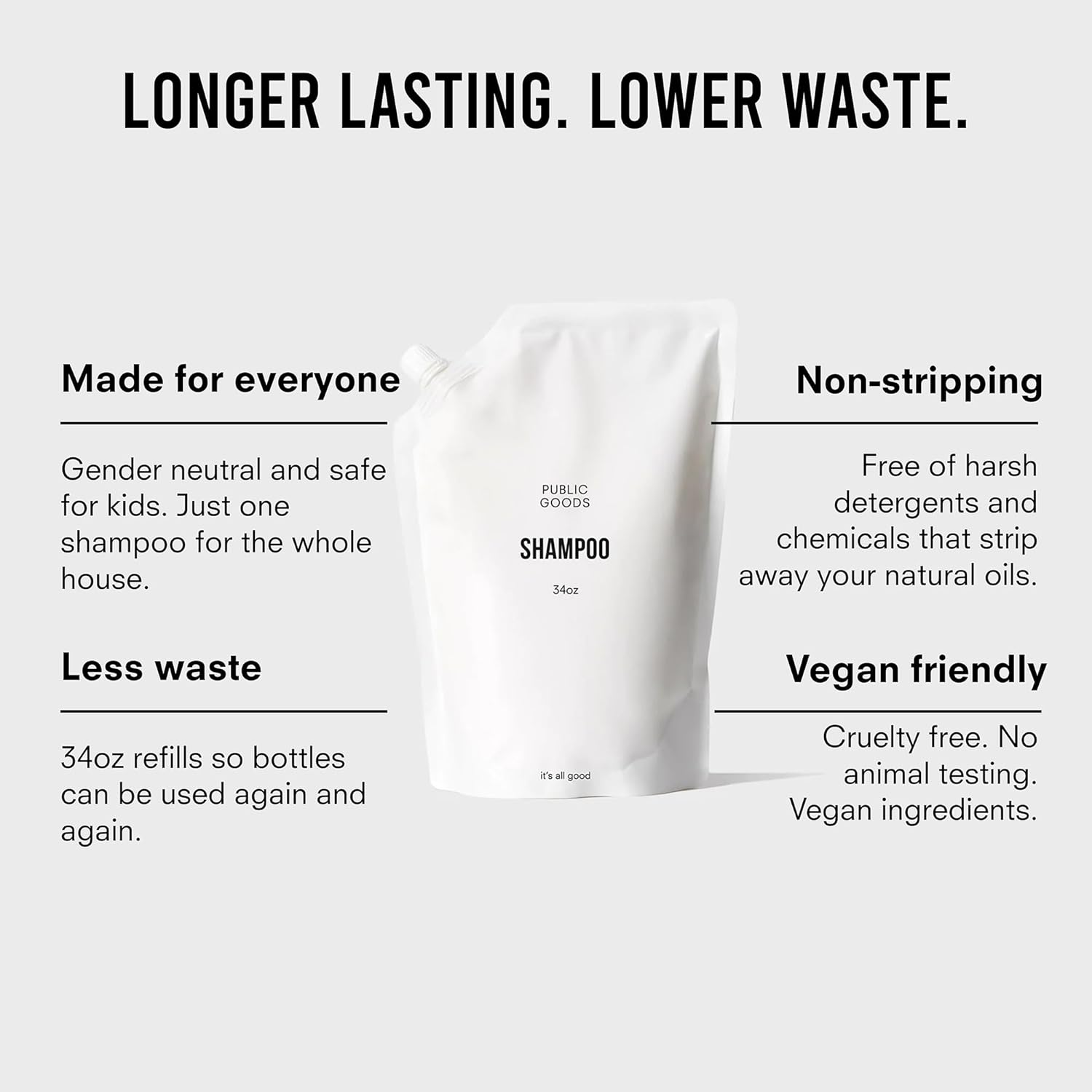 Public Goods Shampoo for Women & Men | Natural Gentle Shampoo to Cleanse & Nourish All Hair Types | Made with Organic Essential Oils | Sulfate & Paraben Free | Vegan | Made in Canada | 34 Fl Oz Refill