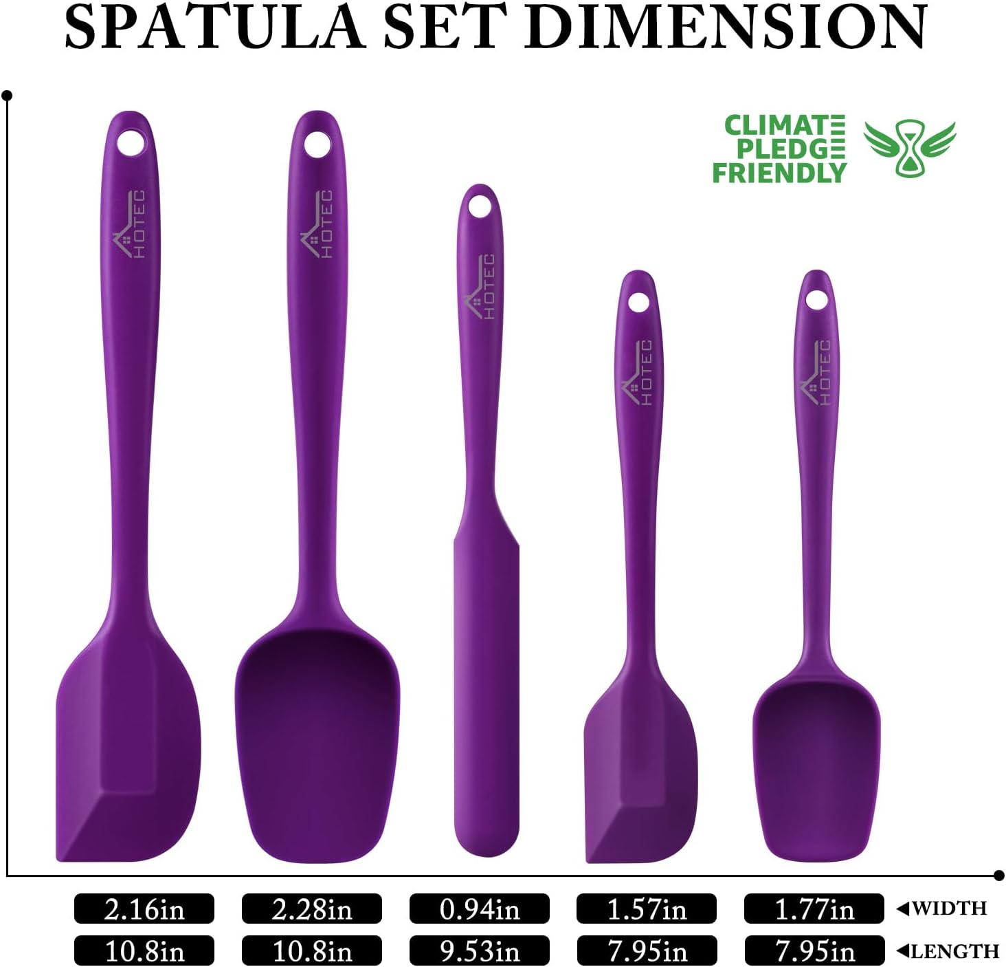 HOTEC 600℉ Heat Resistant BPA-Free Silicone Rubber Spatula Set for Baking, Cooking, and Mixing Non Stick Dishwasher Safe, Purple Set of 5