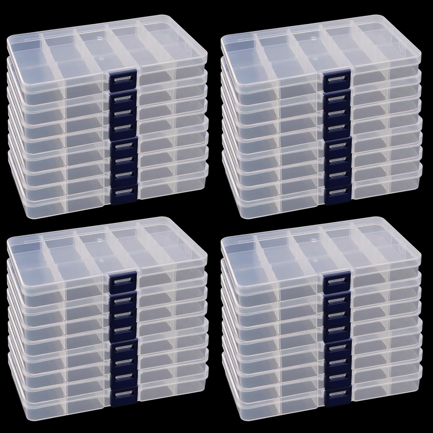 KINJOEK 32 Pack 15 Grids Plastic Bead Organizer Containers Storage, Adjustable Dividers Diamond Jewelry Craft Painting Storage Case, Clear Small Fishing Tackle Box for Sewing Cross Stitch Accessories