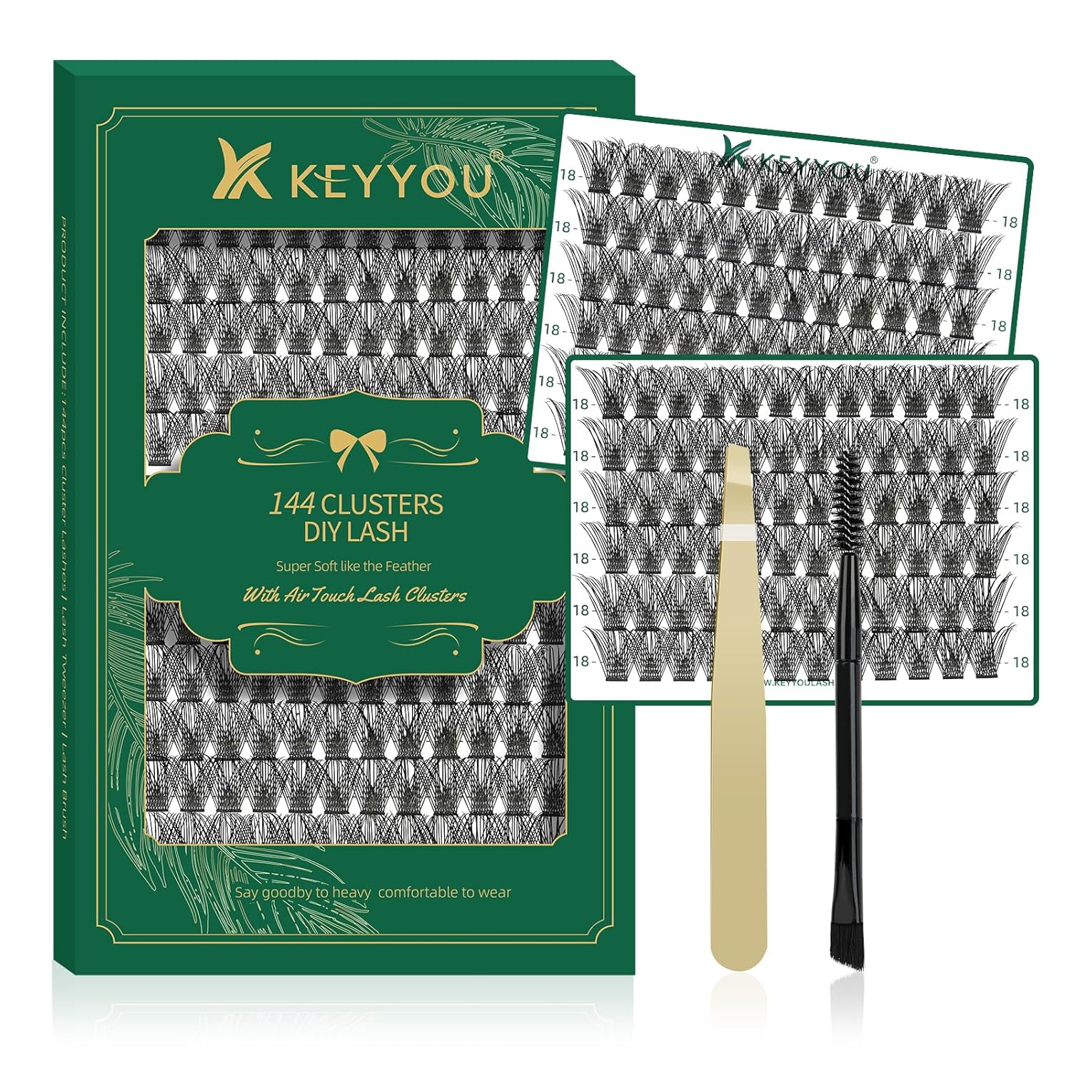 Lash Clusters 144pcs Individual Lashes D Curl 18mm Eyelash Clusters KEYYOU Air Touch Cluster Lashes Super Lightweight Soft Wispy Comfortable Easy DIY at Home(Air02-D-18mm)