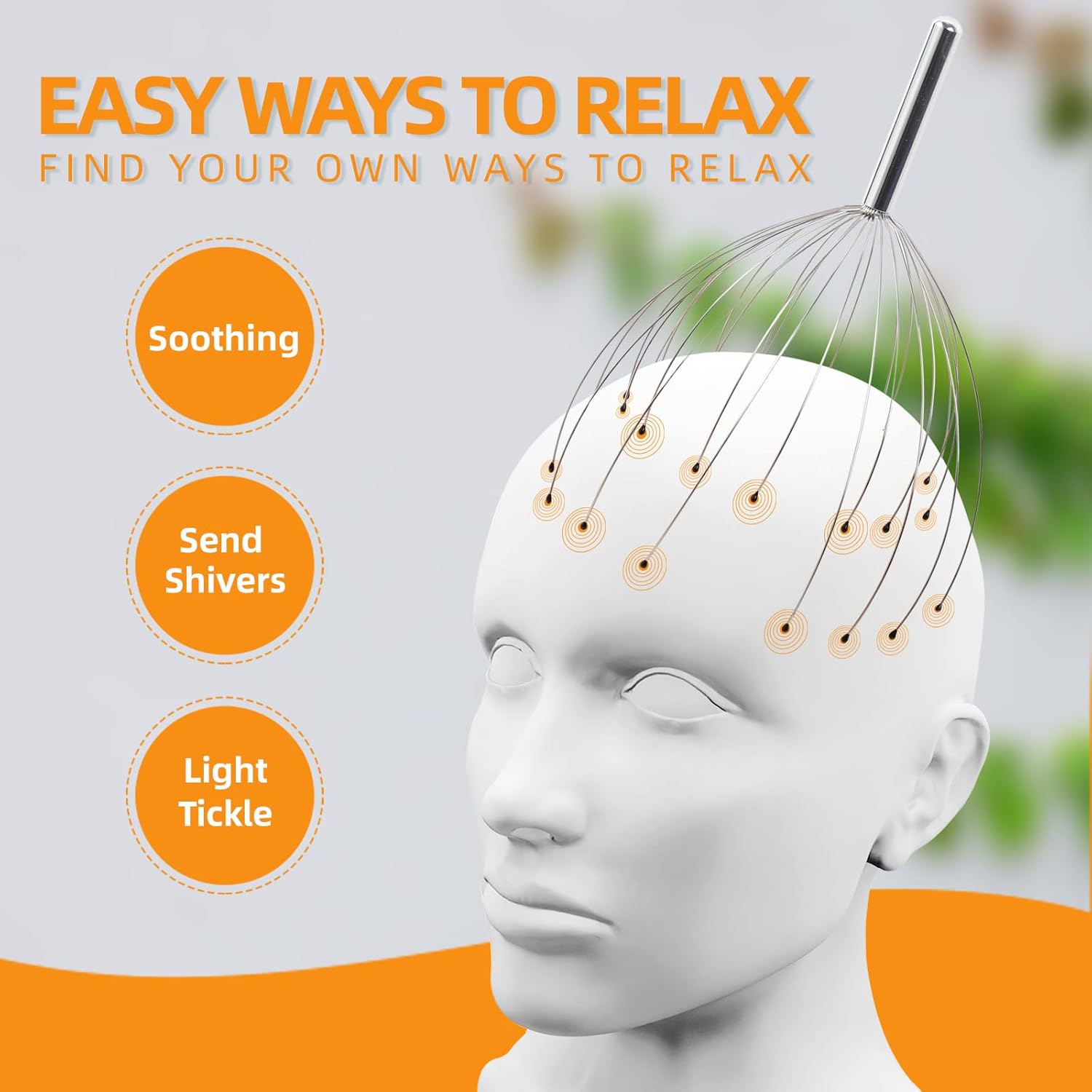 YEZY Head Massager 28 Fingers Head Scratcher Scalp Massager, Back Scratcher, Stocking Stuffers for Scalp Massage Back Massage (Silvery)