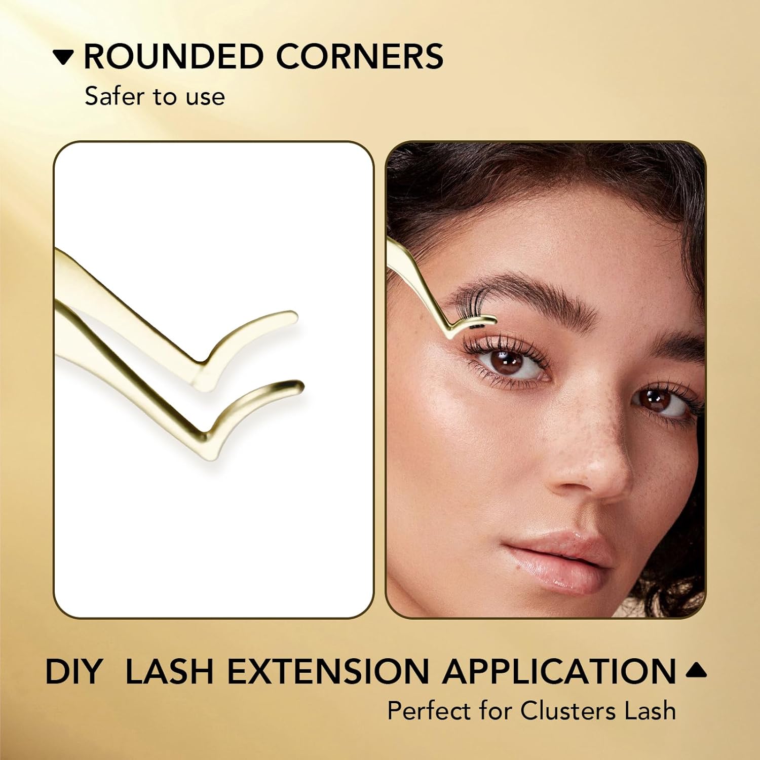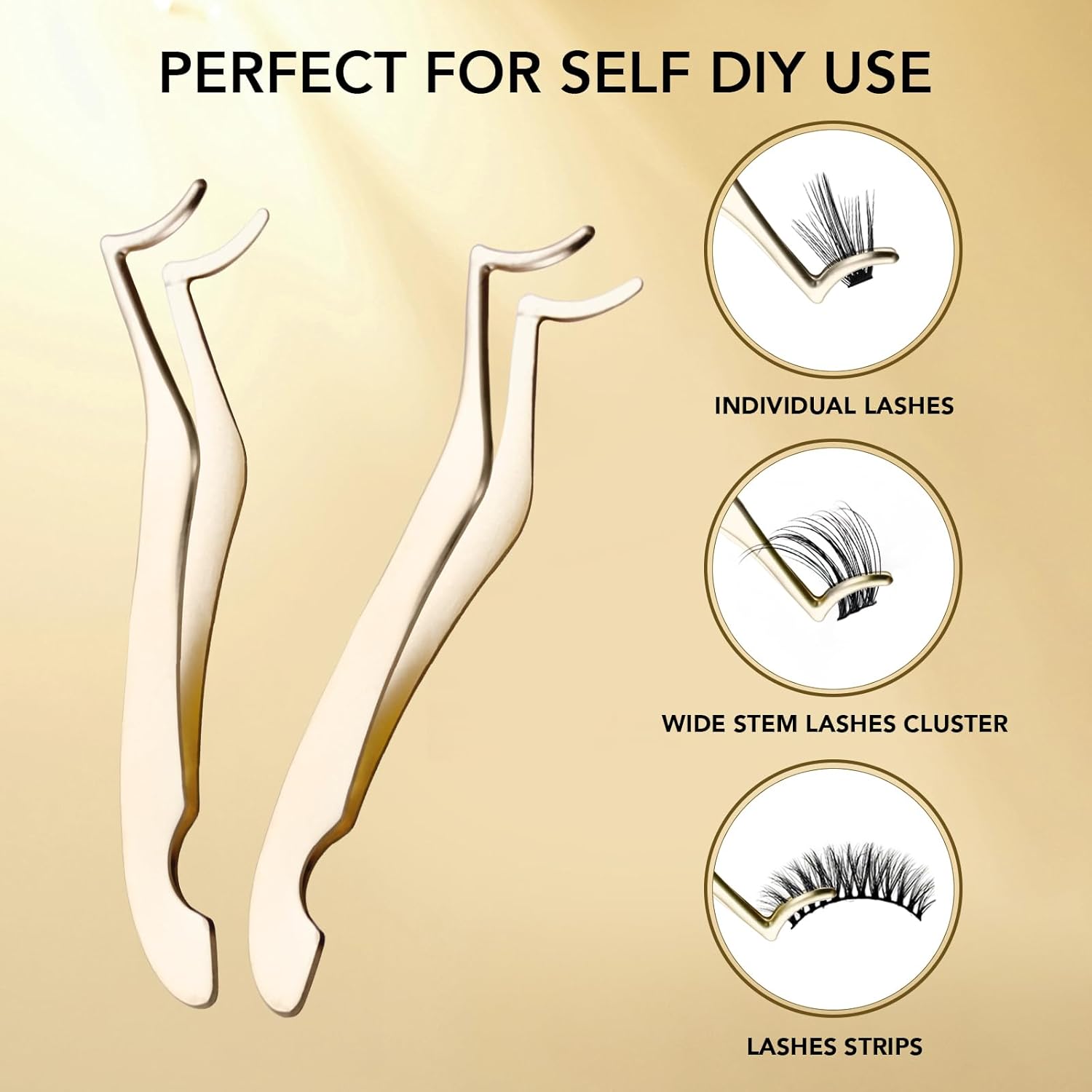 GOLLEE Eyelash Applicator Tool DIY Cluster Lash Tweezers Curved Eyelash Tweezers for Easy Lash Application and Removal, DIY Lash Applicator Tweezer For Strip Lashes Clusters Lash