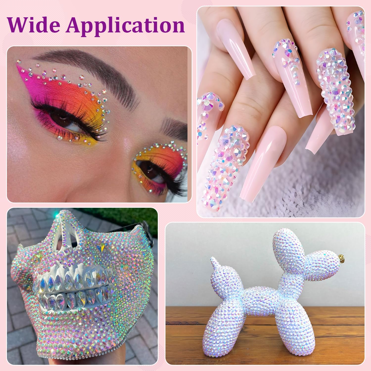 - 💎WIDE APPLICATION -- These sparkling iridescent resin rhinestones are perfect for creating dazzling looks. Use them for bedazzling DIY crafts like shoes, tumblers, mugs, bottles, phone cases, popsockets, scrapbooks, photo frames, diamond paintings, greeting cards, bags, glasses, guitars, keychains, hats, masks, hair clips, bracelets, wristbands, clothing, clothes, wedding dresses, and more. Apply it to what you want to bling!