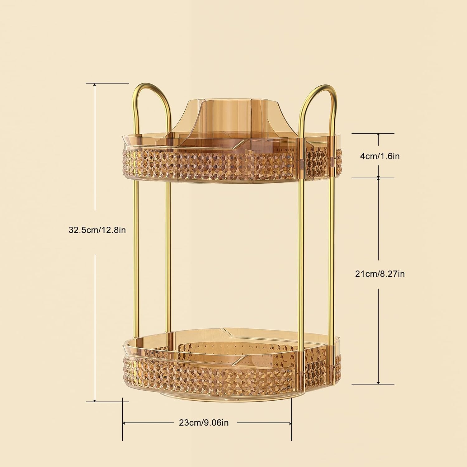 - 2 Tier Lazy Susan Organizer: Skincare organizer and storage comes with brush holder and compartments at the top, the lower layer is designed with a height of 8.27 inches, fearless of high bottles, to meet more storage needs. Let you change the storage space from square to cube, save countertop area